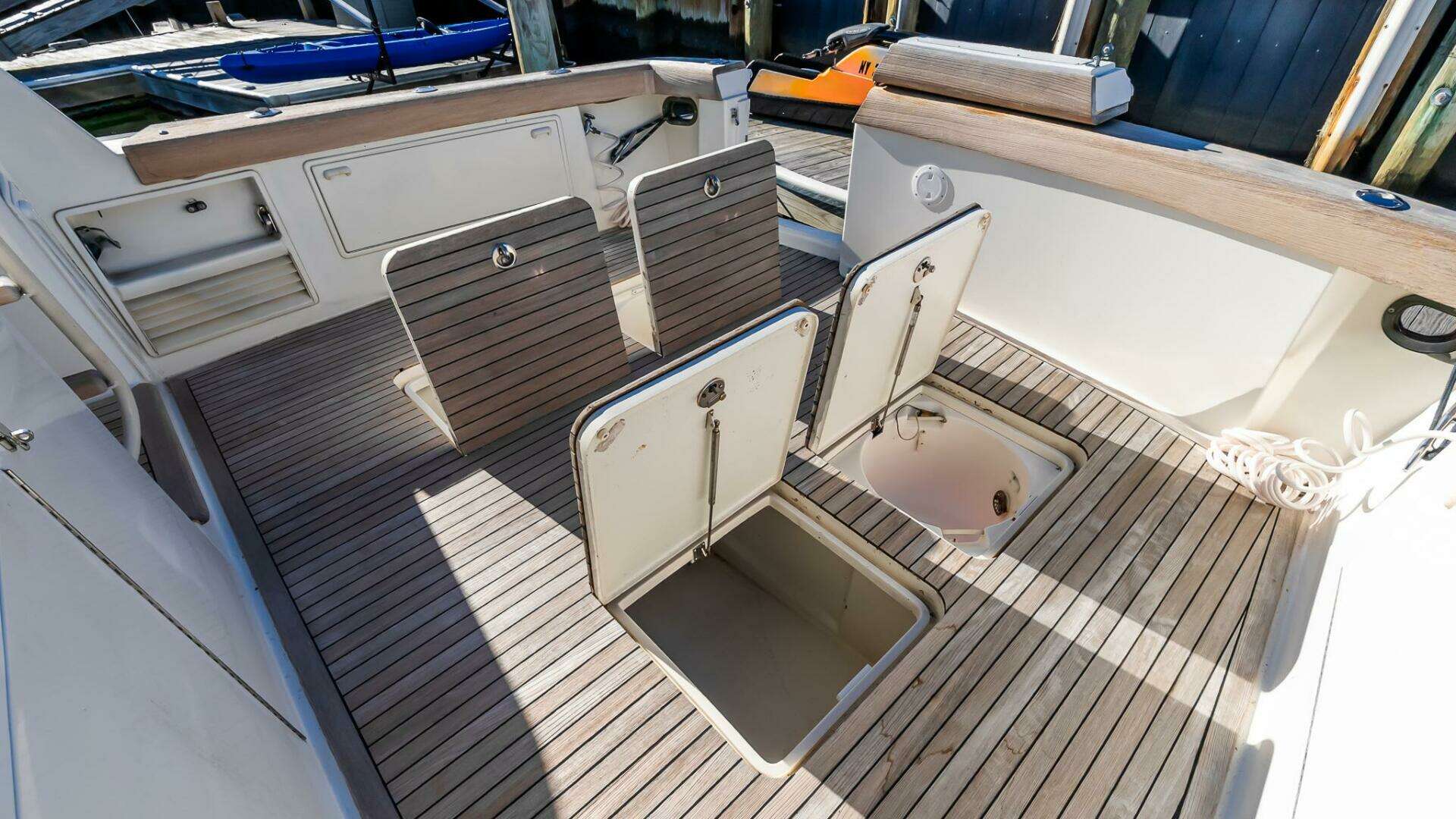 - Very large in-deck fishbox