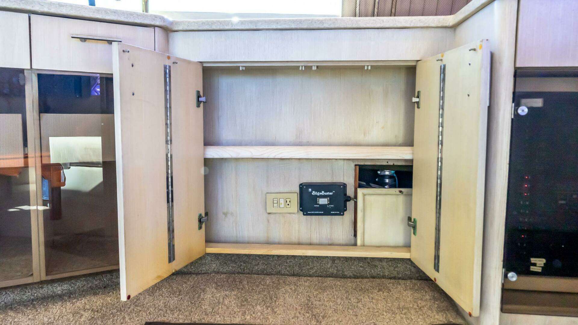 - (2) glass cabinets with pull out drawers