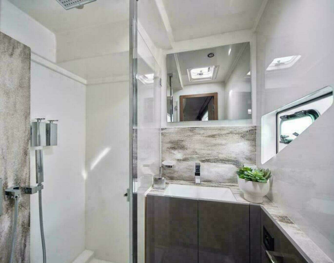 Multi-position bathing platform with resin teak floor and cradle for dinghy, Maindeck protective covers: cockpit sofa and cockpit tables covers, Flybridge protective covers: sofa, helm console and seat, table, Glendinning cable management system, Ship control connection to remote devices and GPS screens, Fly searchlight and rear docking lights, 4x underwater lights, Cordless vacuum cleaner, Inverter 24V - 115V/60HZ - 2000W, Mosquito screens for hull and deck ports, Wooden venetian window blinds in salon and cabins, Brushed light oak hardwood floor for entrance and saloon, Miele convection/microwave
