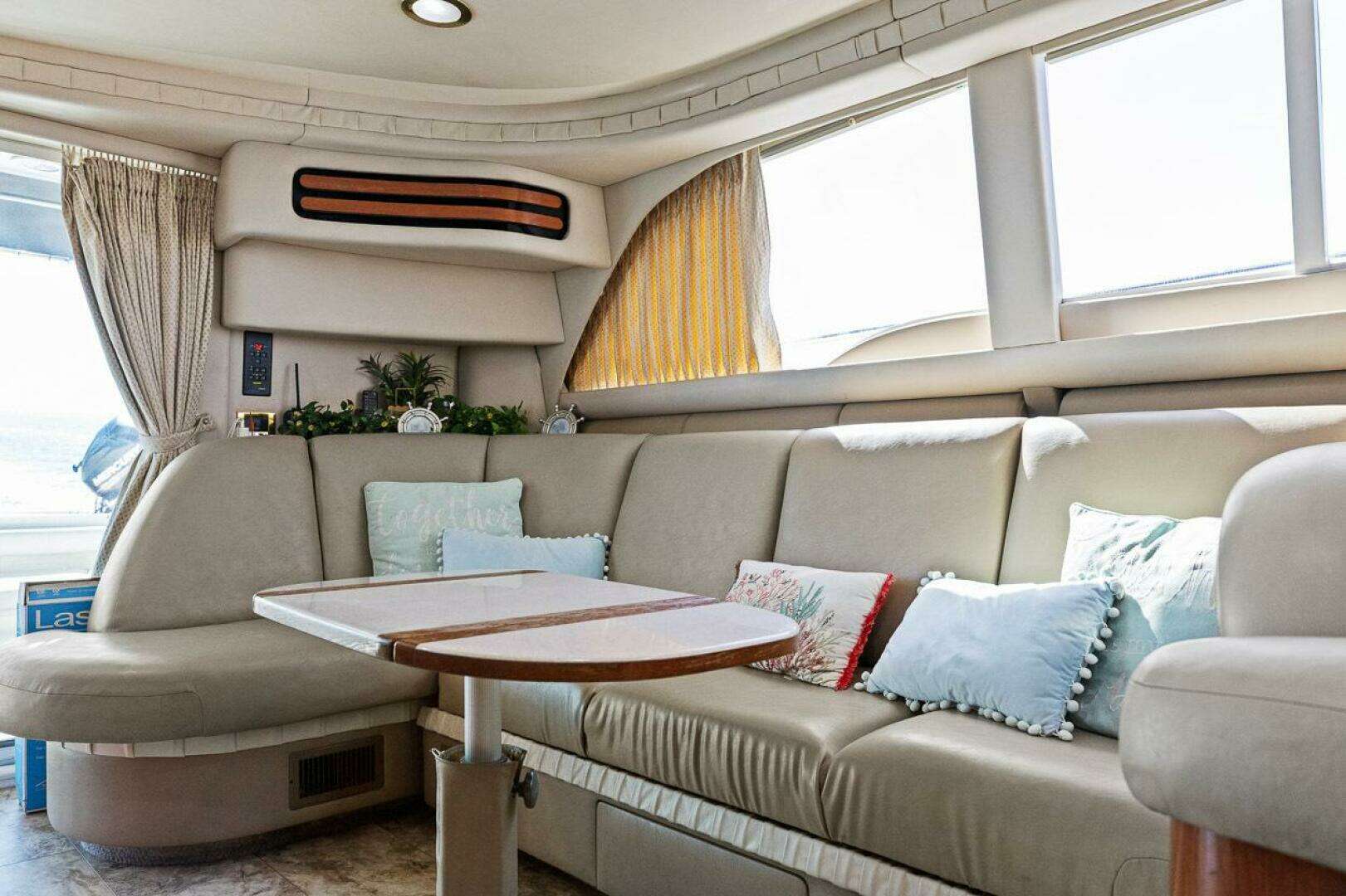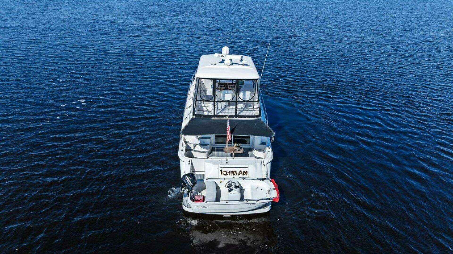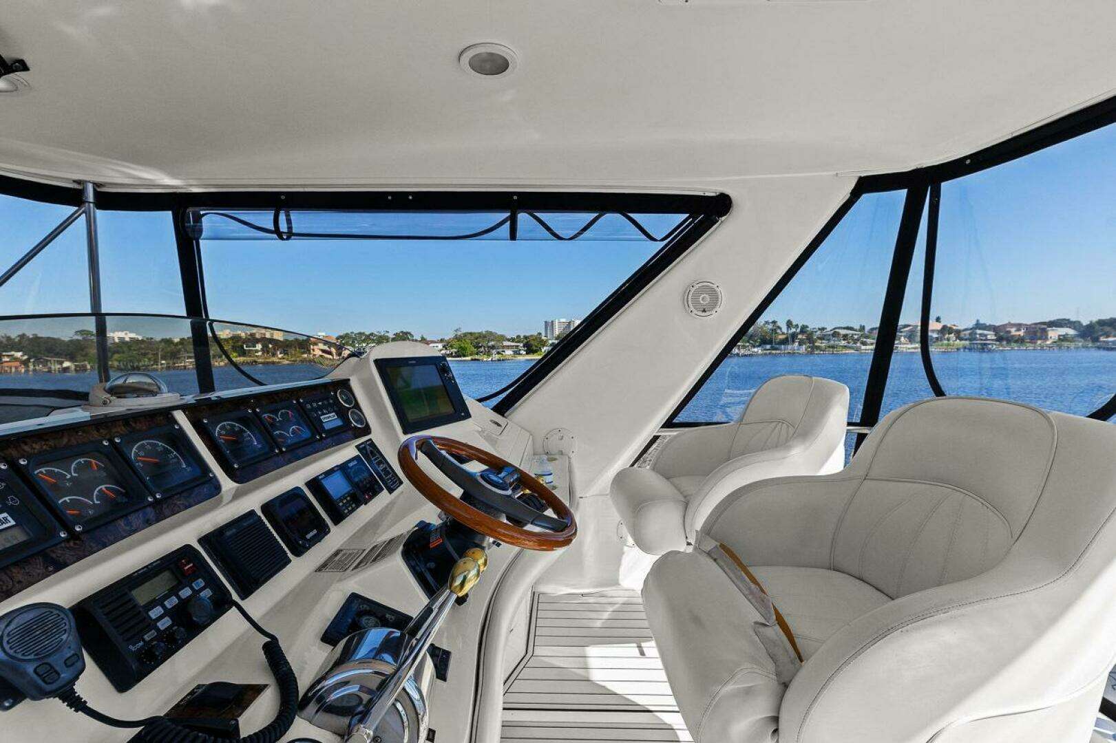 - Spacious flybridge with ample seating for enjoying panoramic views; the bridge vinyl needs to be updated.