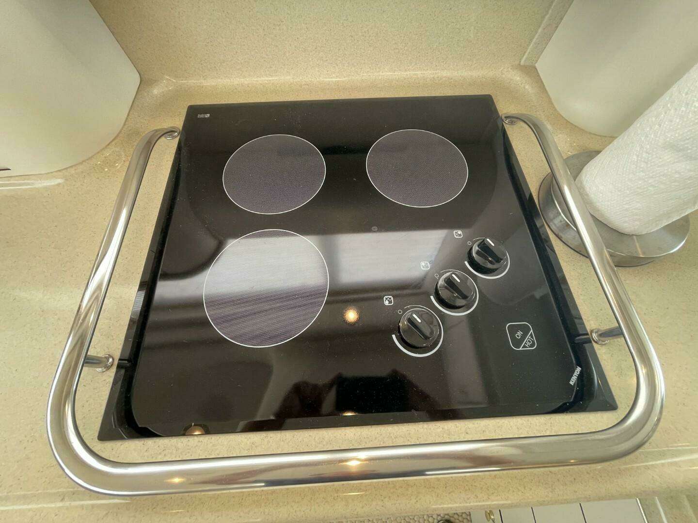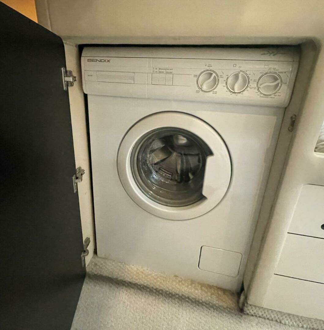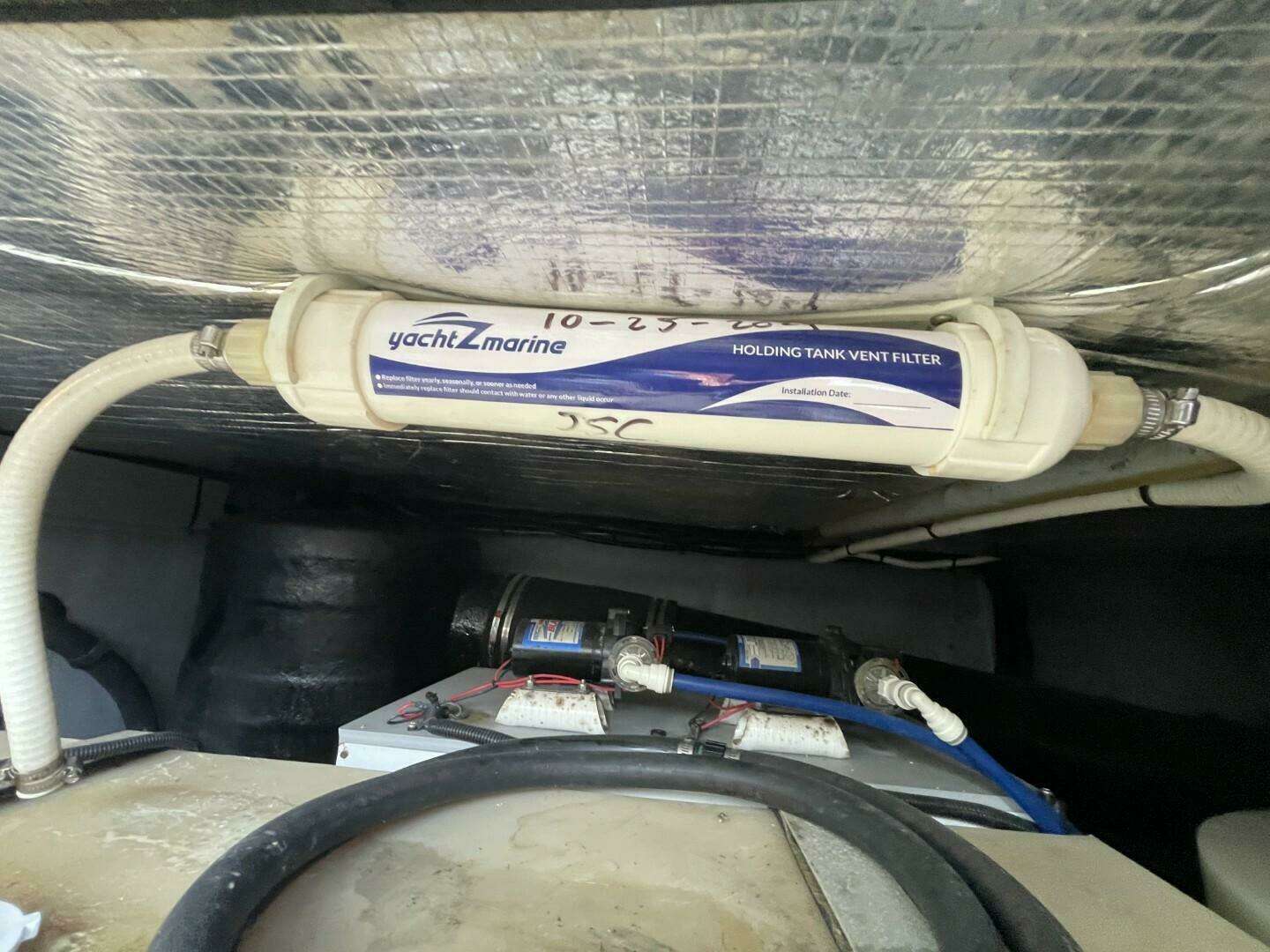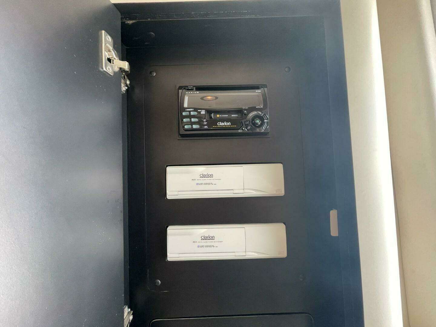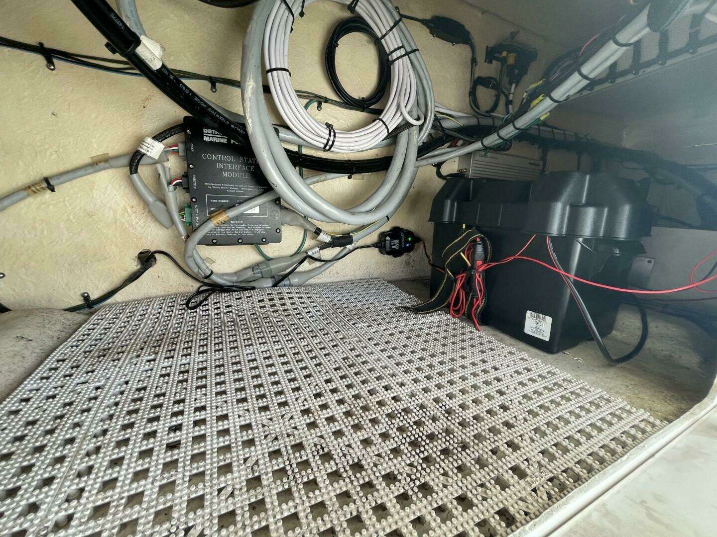 Starting as you board her from the large Swim Platform, you enter her cockpit which has been enclosed to make a great outdoor sitting area. She has a large storage hatch in the transom along with a bench seat. Her engine access is through a large hatch in the cockpit sole. Her cockpit, stairway to the bridge and bridge deck is on the port side. The stairway to the bridge is wide and easy to navigate. Her bridge is large and has her helm station with two swivel seats, a wet bar and l-shaped lounge forward, all kept comfortable by the reverse cycle heat and air. From the cockpit you enter her cabin via a sliding glass door and the first area is the salon, dinette and galley area. She has a settee along the port side that is electronically converted into a berth with the dinette forward. Her starboard side has an occasional chair and entertainment center, a country kitchen bar and galley forward. You move down the companionway steps and her guest cabin is to starboard and features an upper and lower berth that converts to a settee and is home to her washer/dryer. Her VIP Stateroom is to port and features a queen berth and entrance to the Guest Head (it also has an entrance from the companionway). All the way forward is her Master Stateroom which has an Island Queen Berth, Storage and entrance to the Master Head which is very impressive.