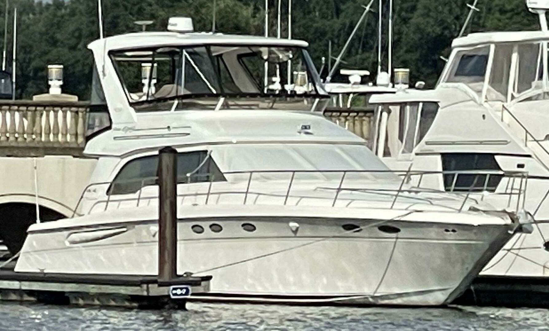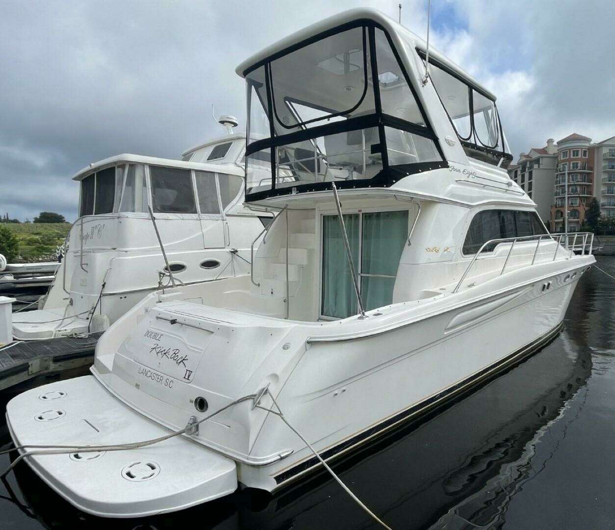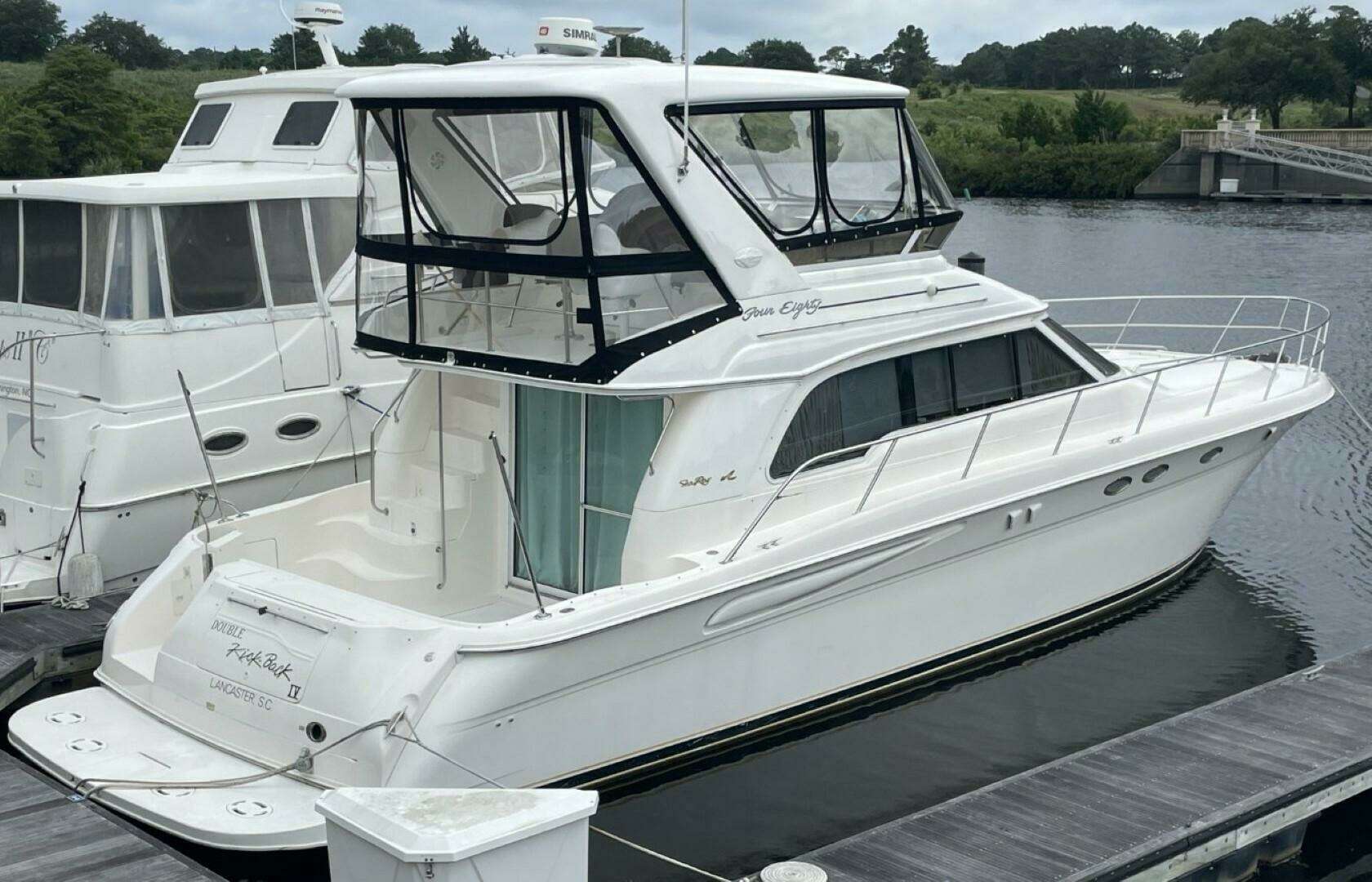 Introducing the stunning 1998 Sea Ray 480 Sedan Bridge, a remarkable convertible boat that combines elegance with performance. Measuring an impressive 51.17 feet in overall length, this vessel is crafted from durable fiberglass, ensuring longevity and resilience on the water. Powered by twin Detroit 6V92TA diesel engines, each delivering 550 horsepower, it promises exhilarating cruising speeds of up to 23 knots. With a maximum hull speed of 28 knots, the Double Kickback is designed for those who appreciate both speed and comfort. Equipped with an electric windlass, this boat enhances convenience during anchoring. The thoughtfully designed accommodation features two heads, ensuring comfort for all guests. With a total of 691 and 697 engine hours, this well-maintained vessel is ready for new adventures. Experience the perfect blend of luxury and performance with the Sea Ray 480 Sedan Bridge, where every journey becomes a memorable escape.