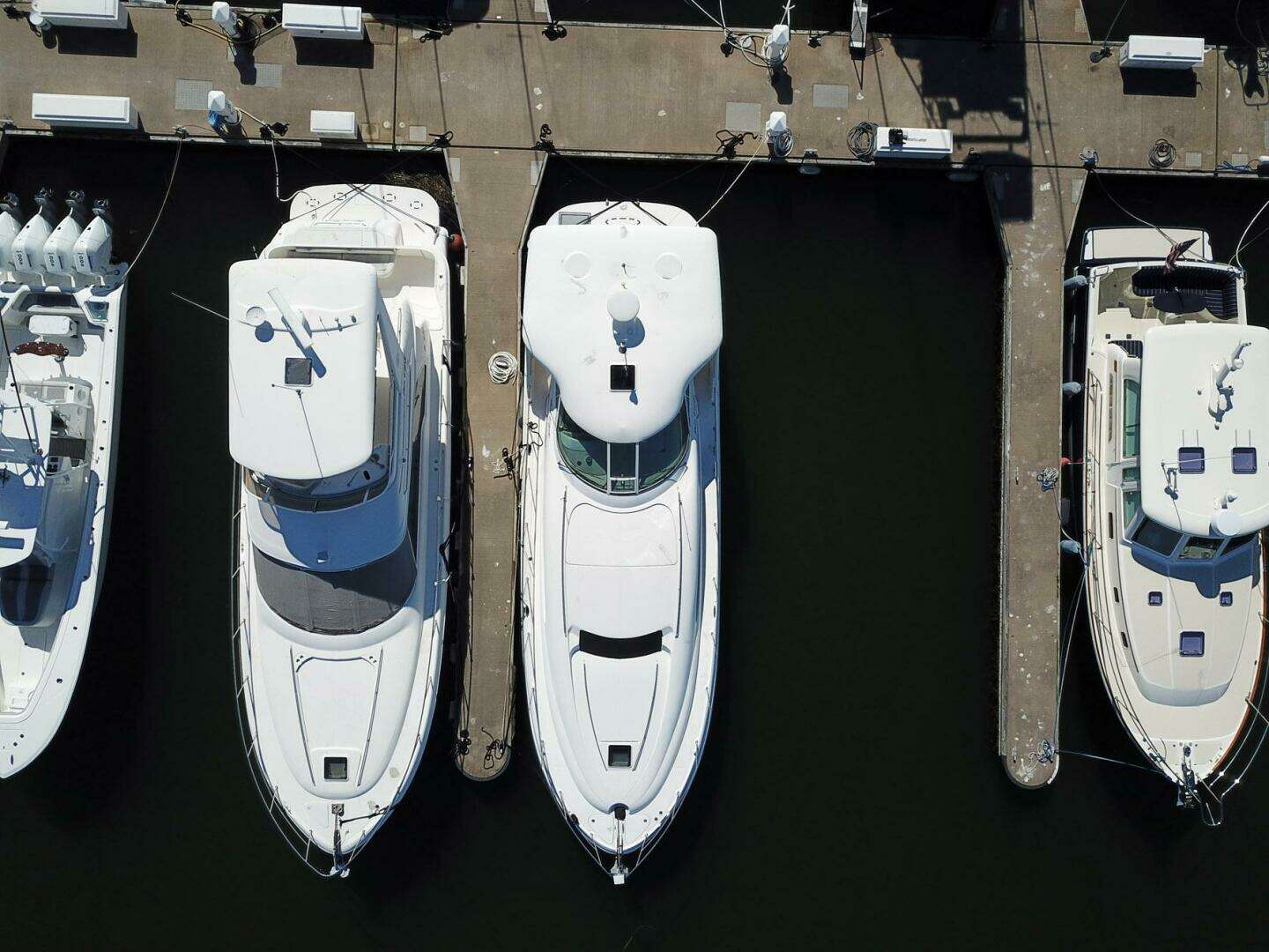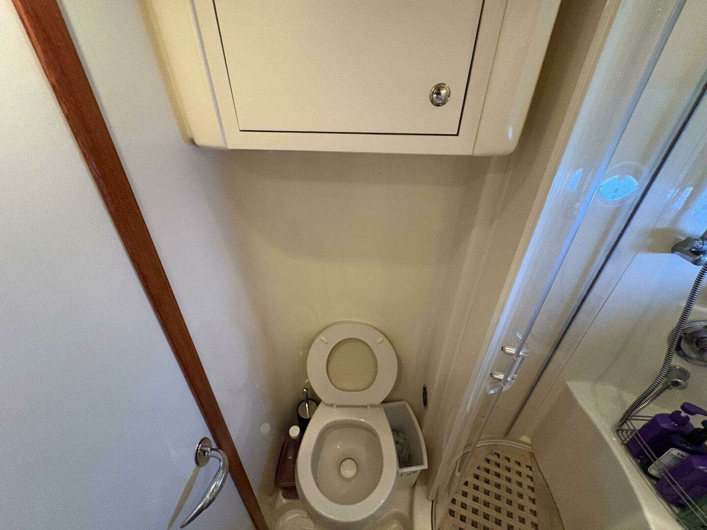 The Sea Ray 480 Motor Yacht features quiet, twin Cummins engines providing a stealthy departure (no wake, of course). For entertaining, the large aft deck has a wet bar with an ice maker, as well as a Clarion AM/FM/CD with six-disc changer, four speakers, and a remote control. A fiberglass hardtop protects passengers from the elements, and textured steps lead to the swim platform with concealed stainless steel three-step ladder. The walkways leading to the foredeck are wide and textured for safe passage, and a cushion turns the area into a large sun pad. Down below, a full-size bed with innerspring mattress is the focal point of the forward stateroom. A portside storage cabinet with drawers, and a starboard full-length hanging locker with lights and beveled mirrors, provide storage. There’s also a 13-inch TV/VCR/Radio combo, as well as private access to the main head compartment. Two acquaintances can stay quite comfortably in the twin berths of the guest stateroom. Filler cushions will convert the berths into a king-size bed. The forward head compartment features a VacuFlush head, a solid-surface vanity countertop with sink, a Grohe faucet, and a shower with seat, adjustable shower wand, and removable teak grate. The aft master stateroom features a queen-size bed, a full-length cedar-lined hanging locker, a built-in nightstand, a large built-in storage unit with storage shelves and drawers, as well as a 20-inch TV/VCR/Radio combo. The starboard vanity with sink and plenty of storage, separates the private head with VacuFlush toilet from the private shower with seat and adjustable shower wand. The galley of the 480 Motor Yacht makes wonderful use of space with a custom molded fiberglass countertop, sink with Grohe faucet, recessed three-burner stove, microwave/convection oven, coffeemaker, and a refrigerator/freezer. A washer/dryer combo is located in the step storage compartment.