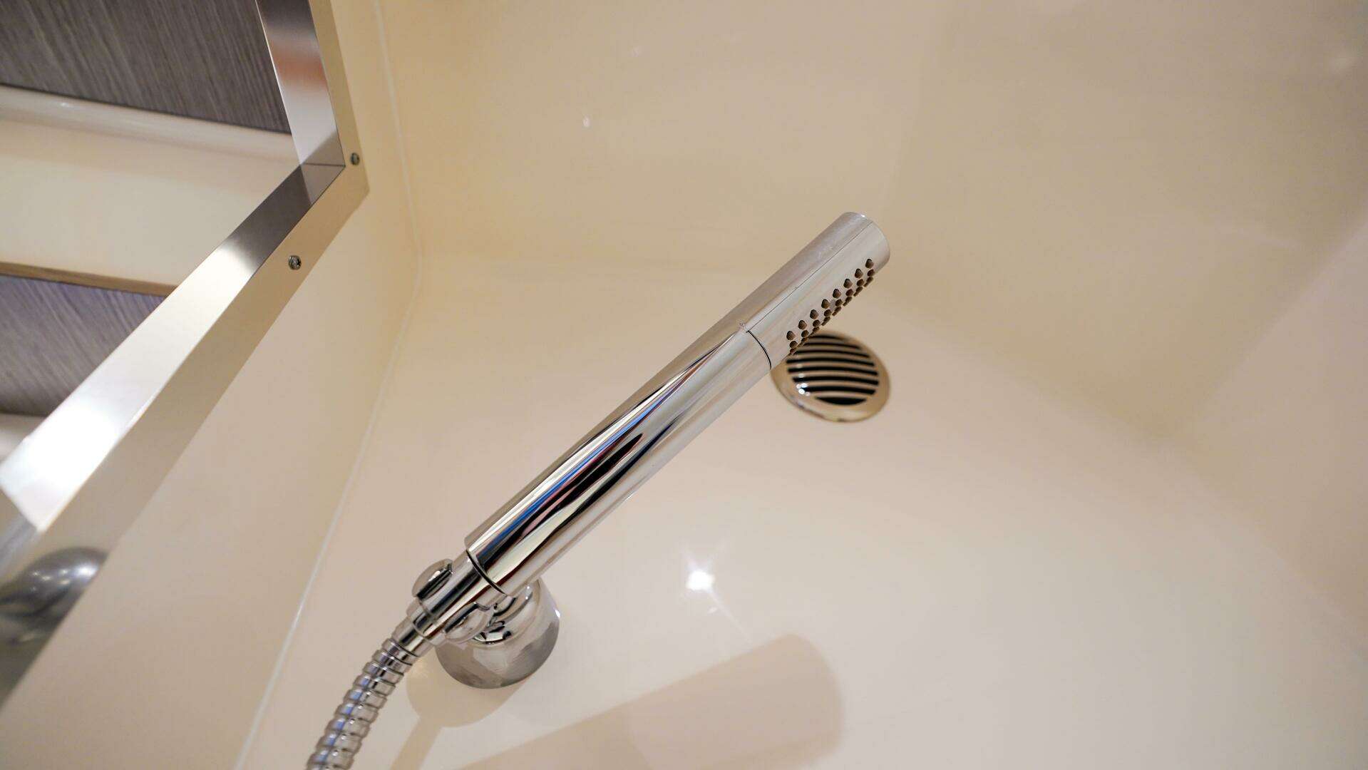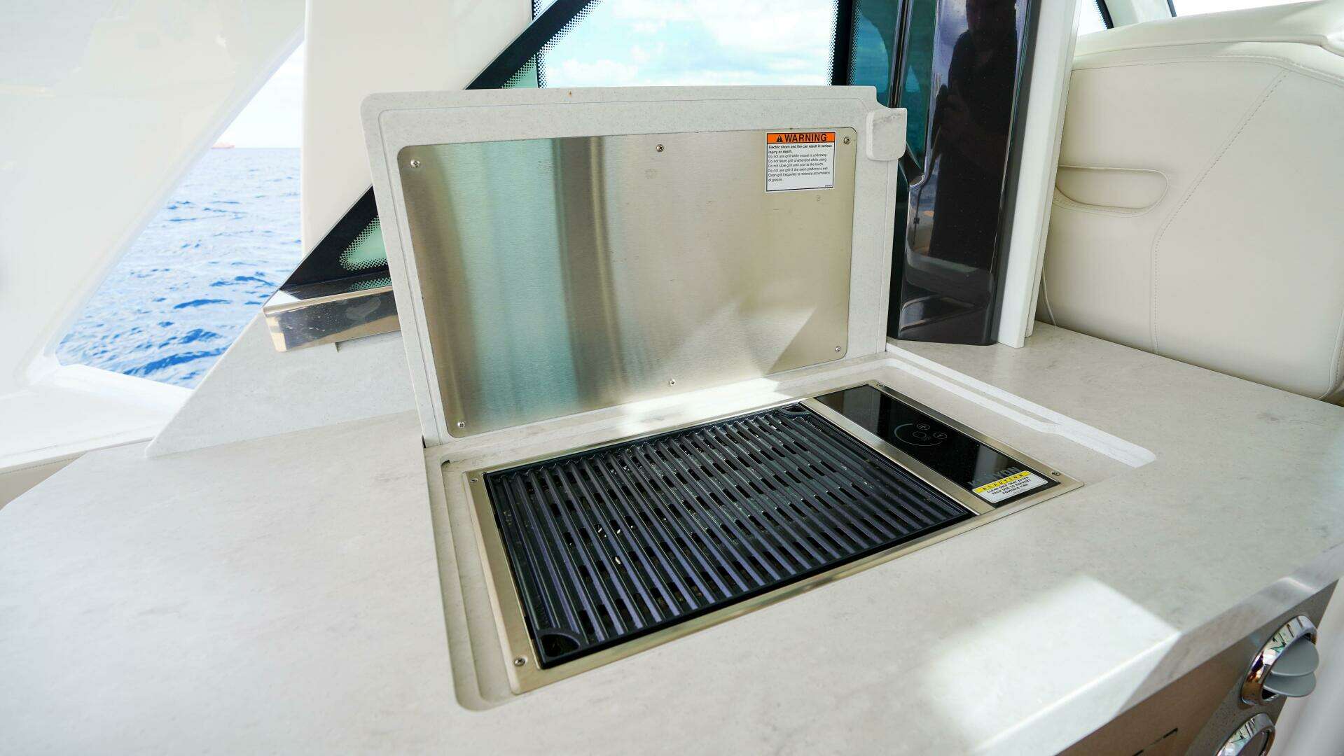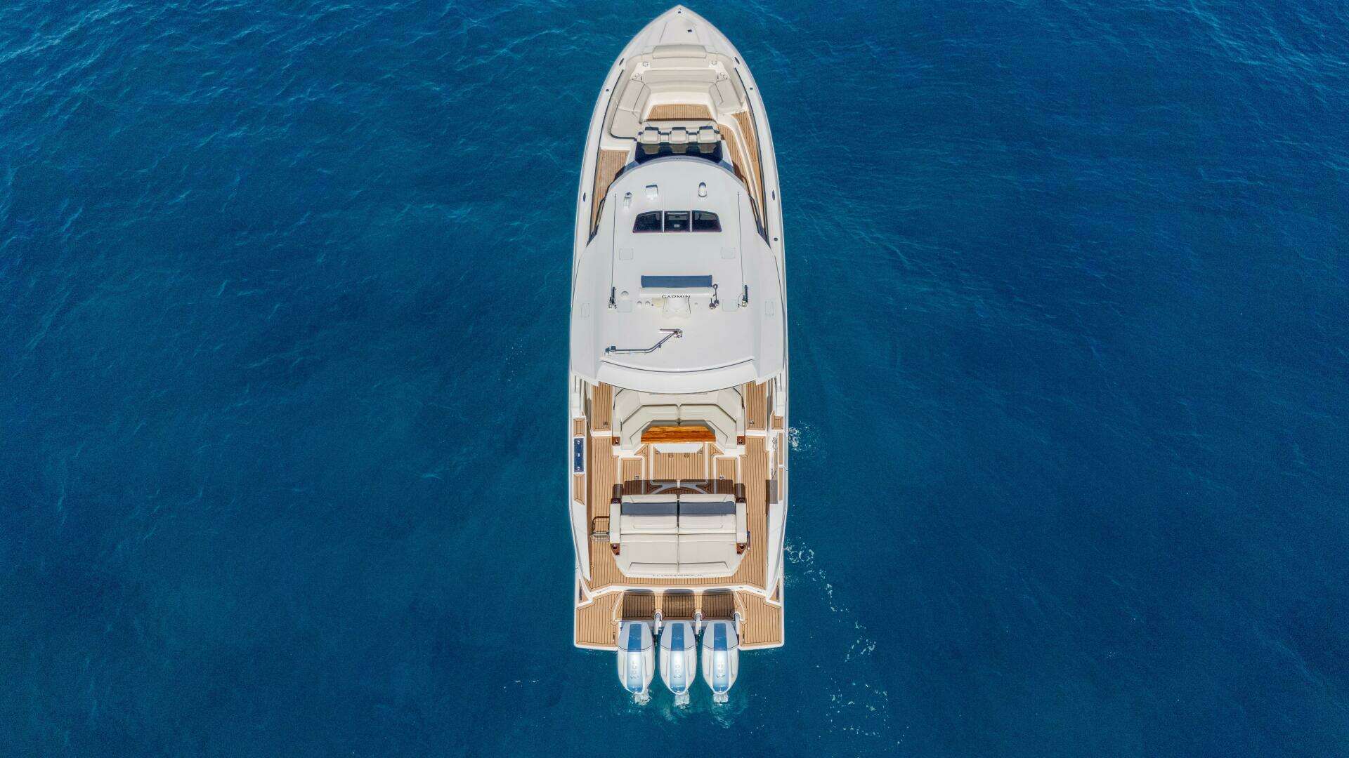 - Port side opening terrace with synthetic teak and telescoping swim ladder