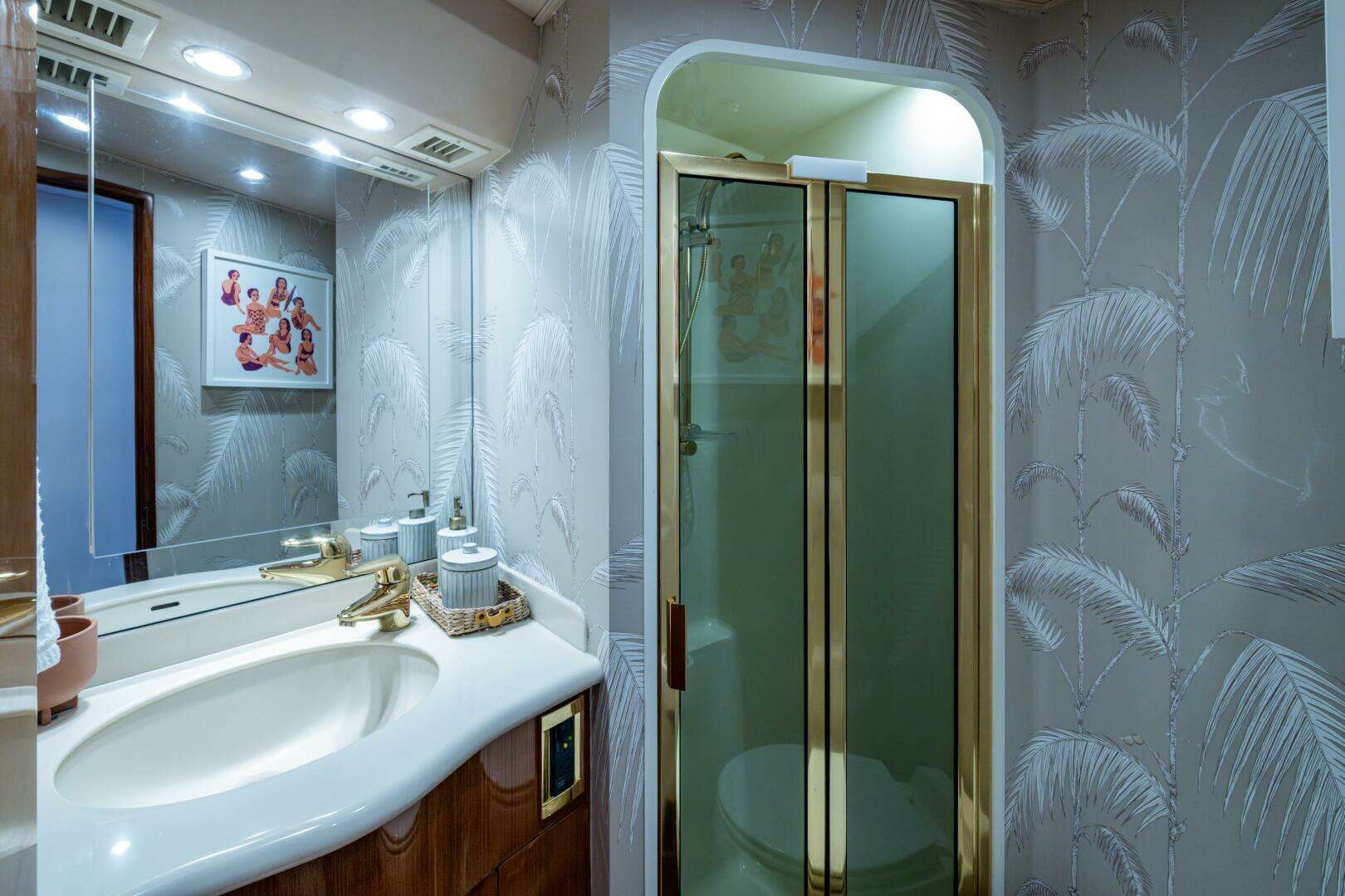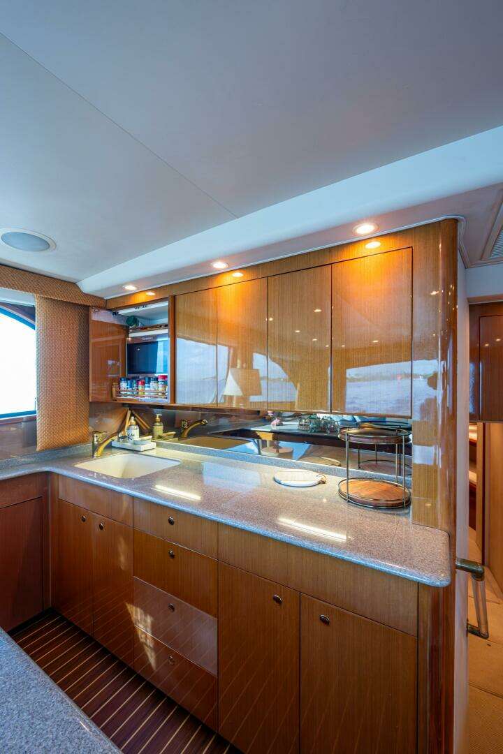 The galley and dinette offer the same accommodations of much larger vessels. The upper galley cabinetry offers tremendous storage in large pullout drawers. The drawer style Subzero refrigerator and freezer offer maximum space.