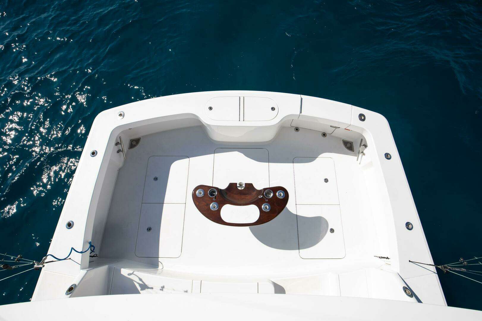 - Recessed in-deck insulated fish boxes (port & starboard) with pump-out