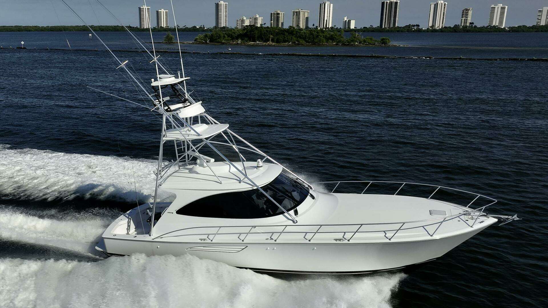 The 2023 Viking 48ST is a powerhouse sport tower yacht that perfectly blends performance, comfort, and craftsmanship. Equipped with twin MAN V8 1200 CRM engines and a Seakeeper Gyro 9 stabilization system, this 48-foot Viking delivers exhilarating speed and exceptional handling with remarkable stability, whether cruising the coast or chasing big game offshore. Its sleek design features a spacious 124-square-foot cockpit, air-conditioned command deck, and elegantly finished interior with premium teak joinery. Built with Viking’s renowned attention to detail and seaworthy hull design, the 48ST offers the ideal balance of luxury and capability for serious anglers and cruising enthusiasts alike.