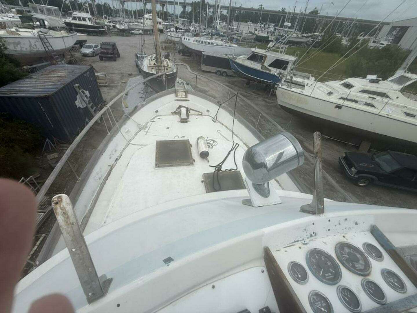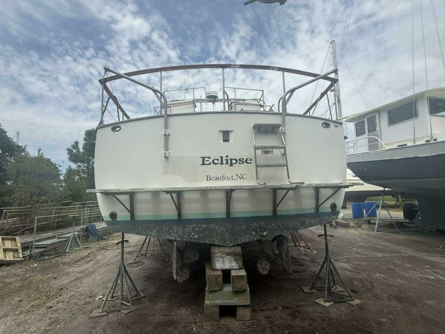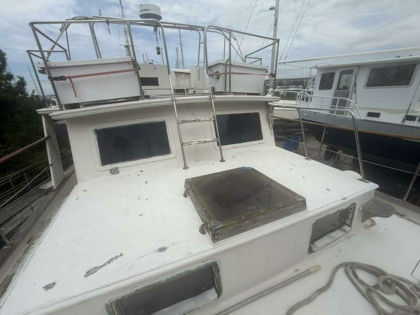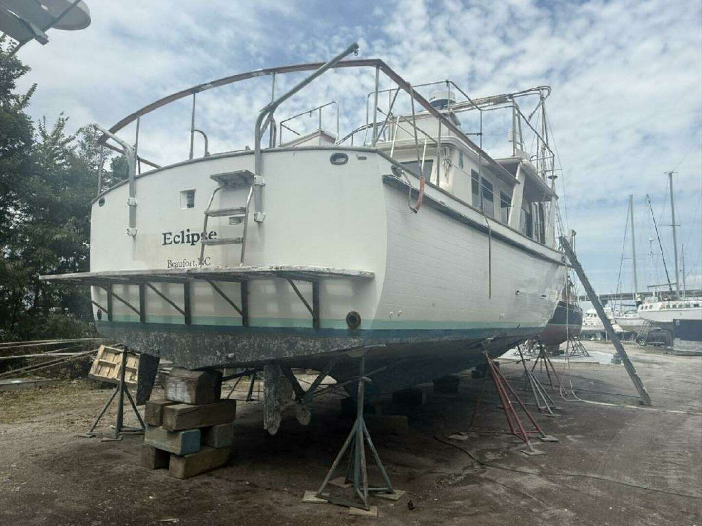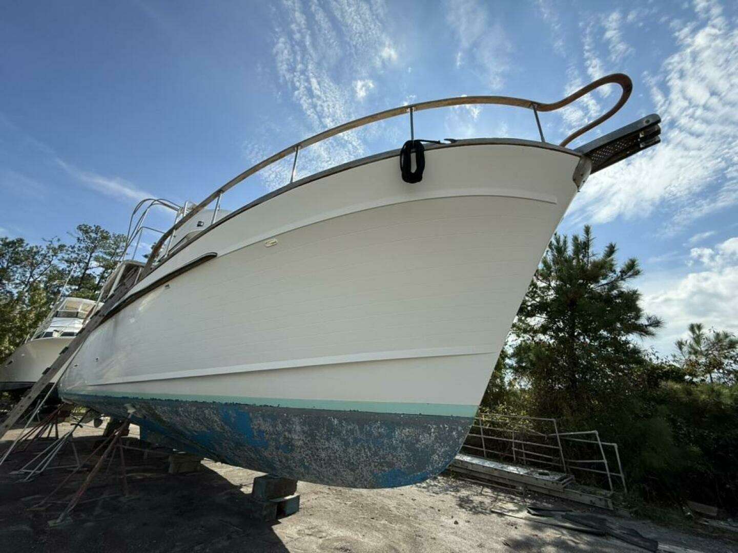 Currently hauled out on the hard, the hull, running gear, propellers, and thru-hulls are all fully accessible for inspection or immediate project work. It’s the ideal time and setting for the next owner to begin her transformation.