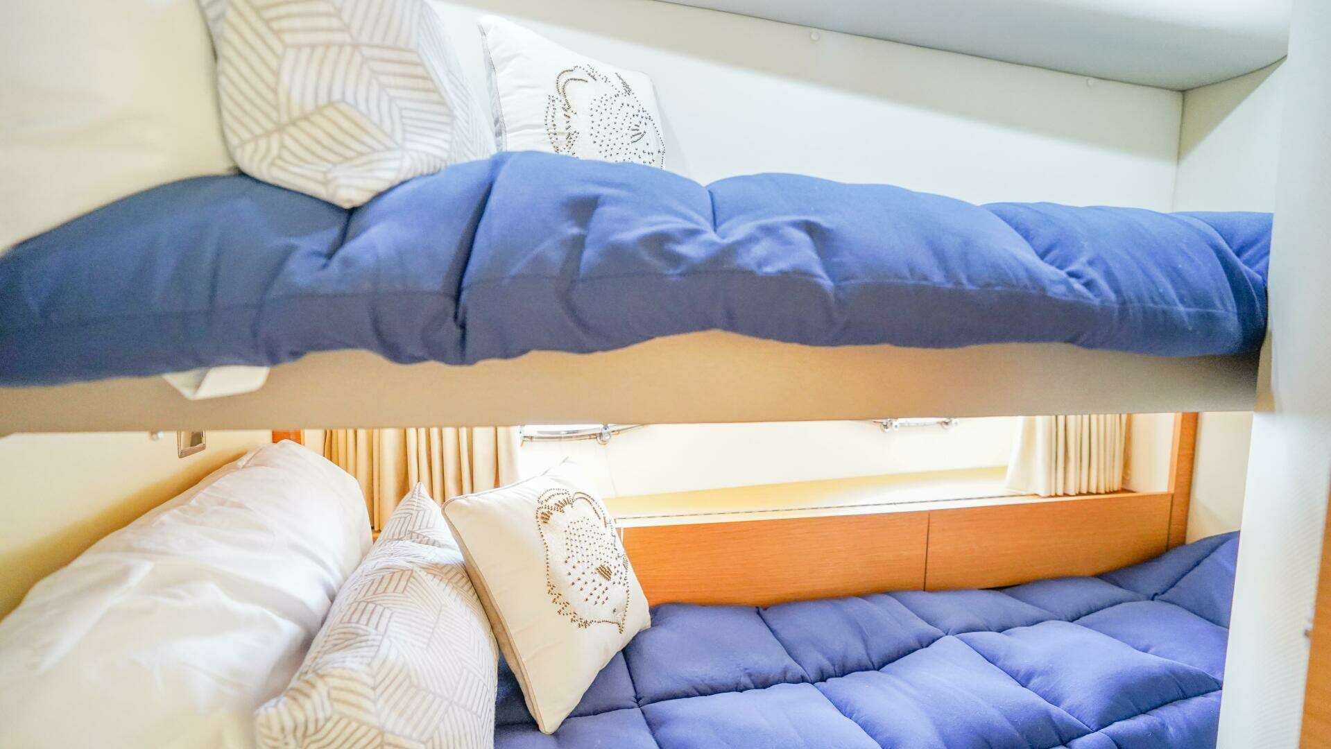 - Full length pullman berths to upper and lower bunks to provide maximum cabin flexibility
