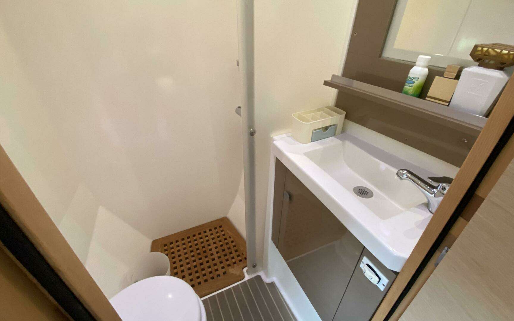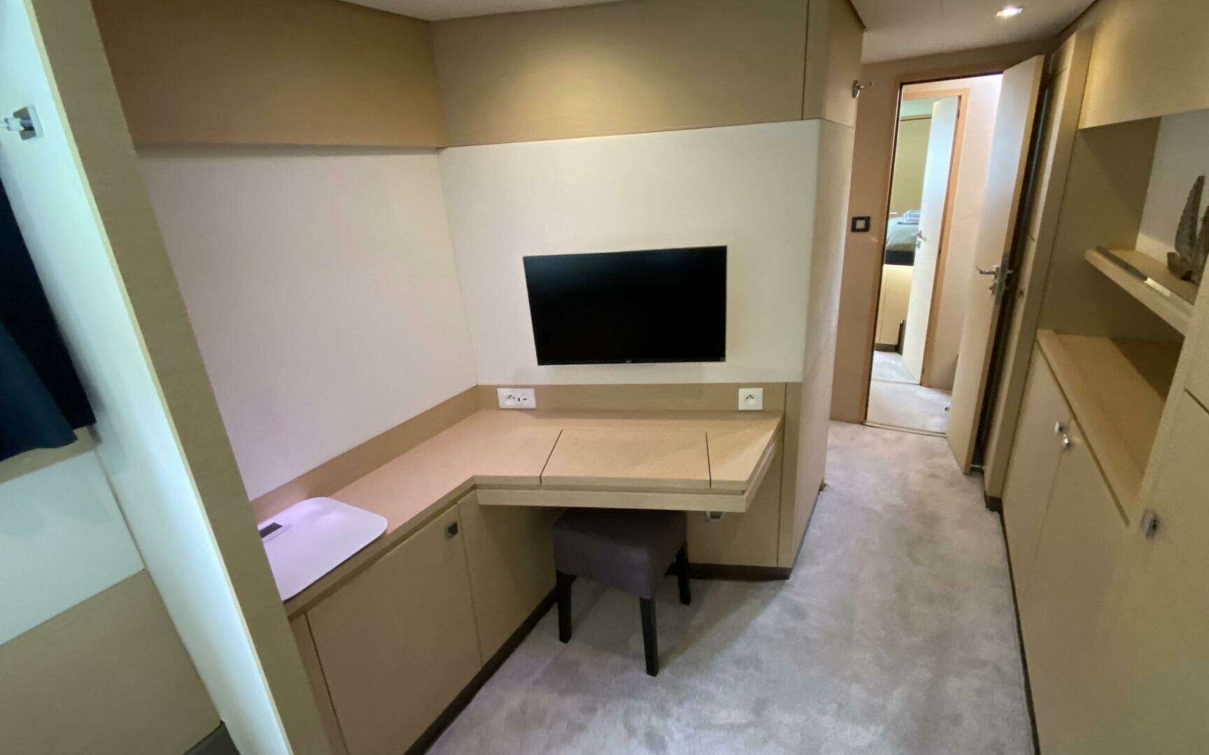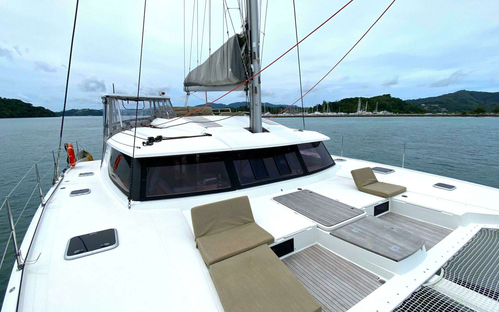 This Maestro version offers a private owner’s suite occupying an entire hull, three spacious guest cabins each with its own ensuite, and a fully equipped skipper's cabin in the starboard bow, all fully air-conditioned.