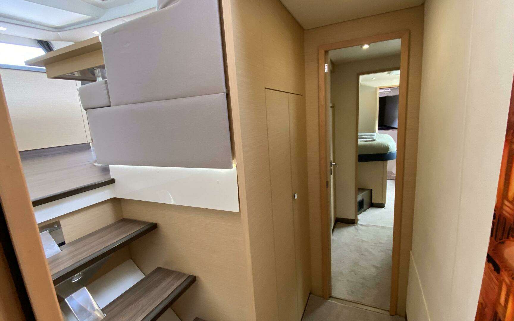 The luxurious 12.4m2 upper lounge deck features a chaise lounge, two sunbathing areas and a vast foredeck sun lounge. The helm station offers 360-degree visibility and protection with a new hardtop bimini and all-weather clears, with easy access to the cockpit and upper lounge deck.