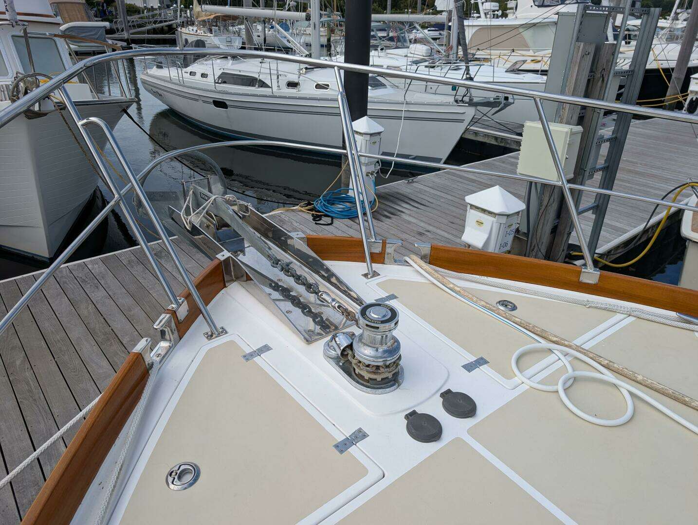 Foredeck lockers, port and starboard, Fresh water faucet, inside forward deck locker