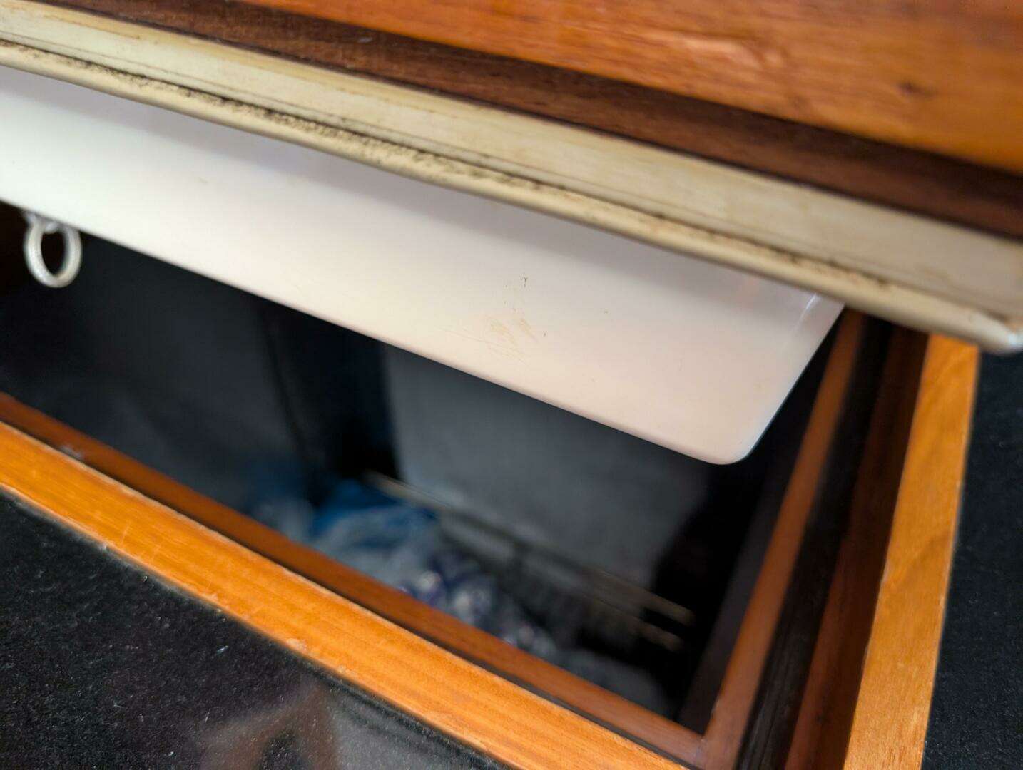 Drawers, teak faced with solid wood sides, drawer slides