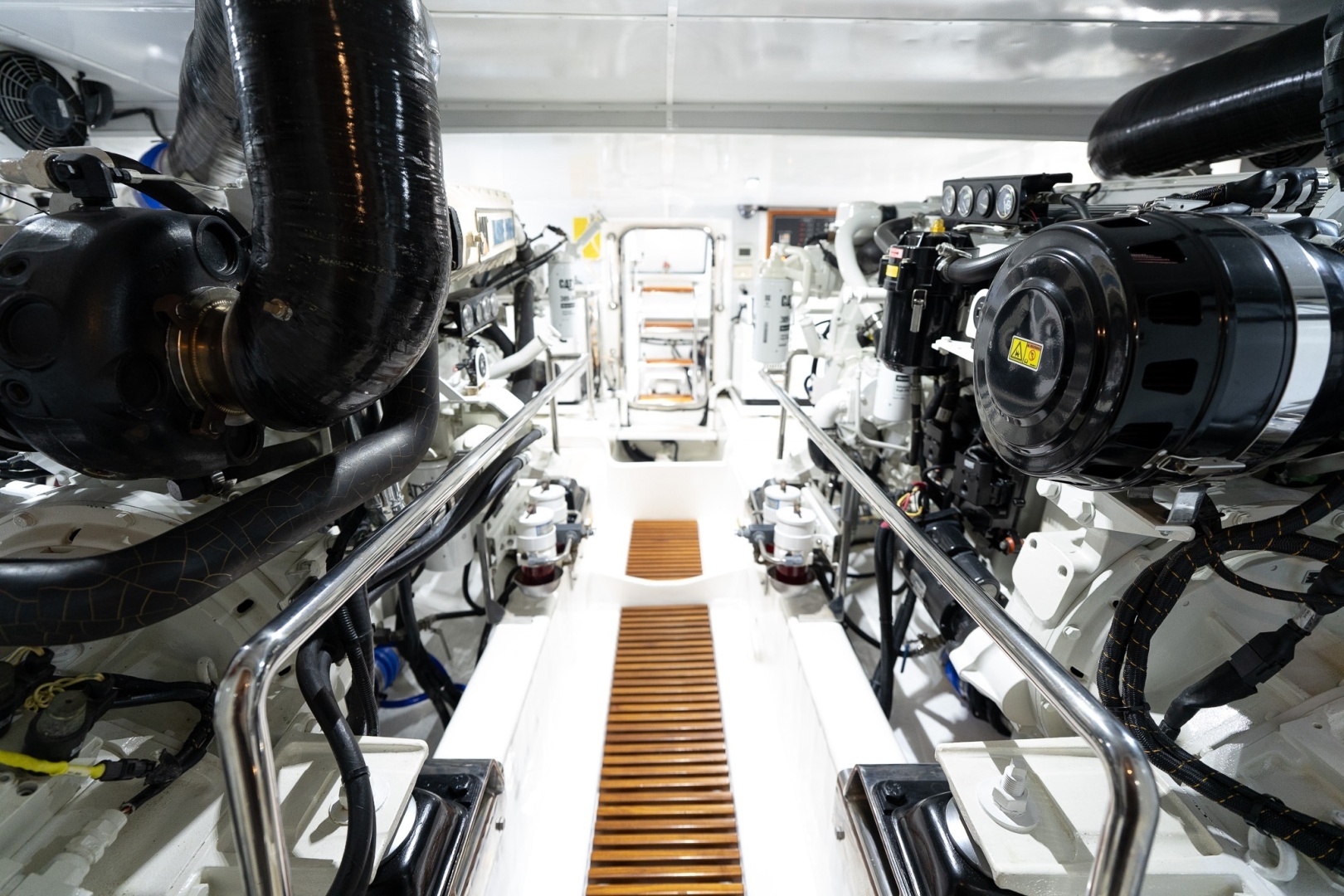 The master stateroom also includes a custom pass-through to the engine room, offering convenient and discreet access to key systems for hands-on owners who value ease of access and efficiency onboard.