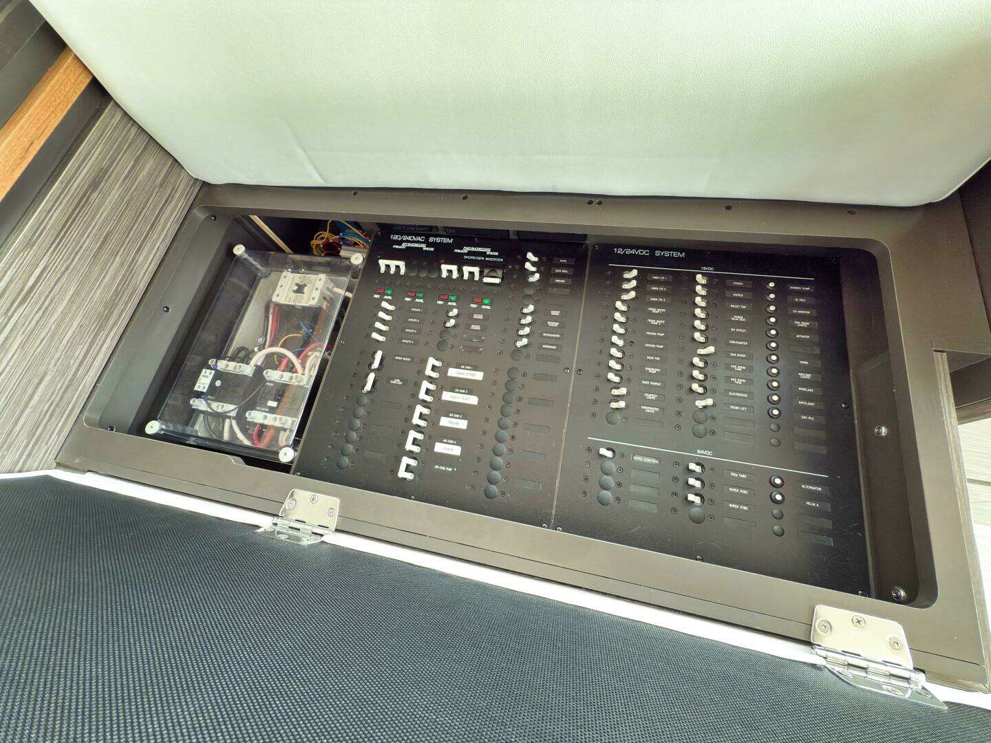 Batteries: 5 x Dakota 200ah Lithium (House / Inverter), 4 x Odessey Group 31 AGM (Engines), 1 x Odessey Group 31 AGM (Generator)