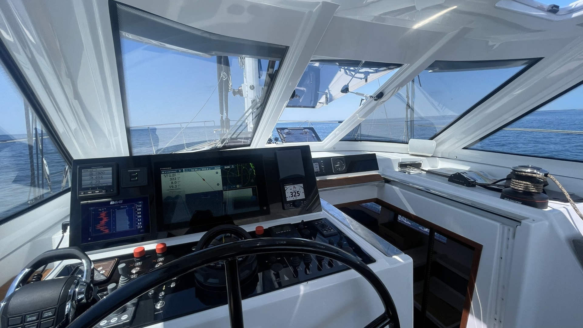 - All the controls (manual and electric) of sheets, mainsail tackle and sail furling systems are run to the cockpit