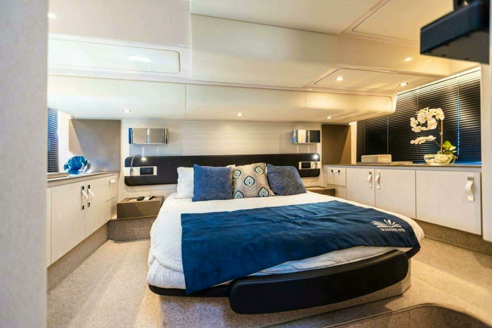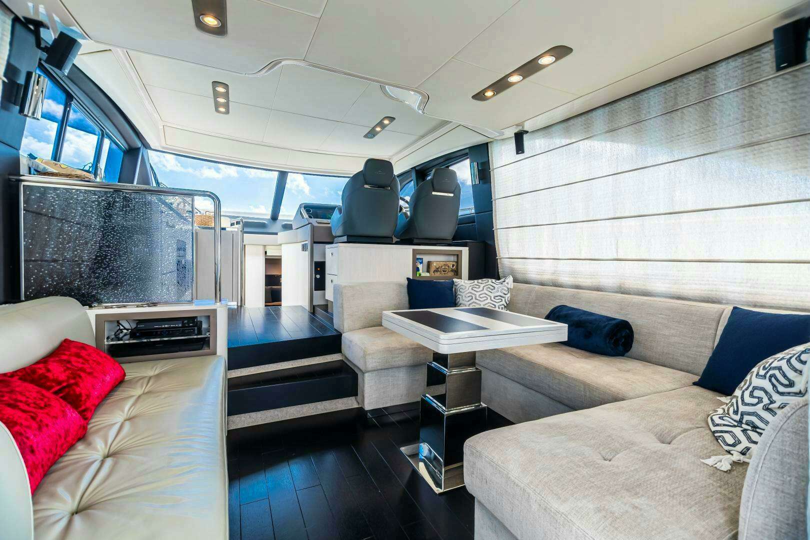 The 50’ (15.24m) Azimut 50 Flybridge yacht BLESSED is an exceptional two-story oasis for any owner interested in a tastefully styled flybridge yacht. No expense has been spared; the level of detail and luxury found aboard BLESSED is second to none. This turnkey Azimut 50 Fly has been well cared for since her launch.Ideally suited for owners with families who want to enjoy special moments and create fun memories on the water, BLESSED has three inviting enclaves for guests to utilize. The forward area of the interior is half helm, half counter-facing dinette – which perfectly suits the yacht for an owner-operator. The main deck aft is fully outfitted with a bar cabinet, lounge seating and a coffee table – ensuring it is the perfect place to unwind.