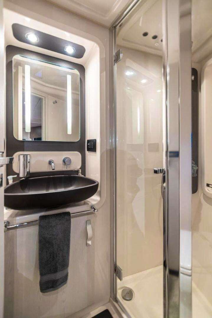 The yacht’s comfortable, spacious master suite is located below deck and features a relaxing, welcoming ambiance. Striking décor, matte bronze touches and rounded furnishings further enhance the space that is styled somewhere between a boutique hotel and a home-away-from-home oasis. Two additional guest staterooms, which are spacious, well-appointed and beautifully styled, and accommodations for crew also are available aboard BLESSED.