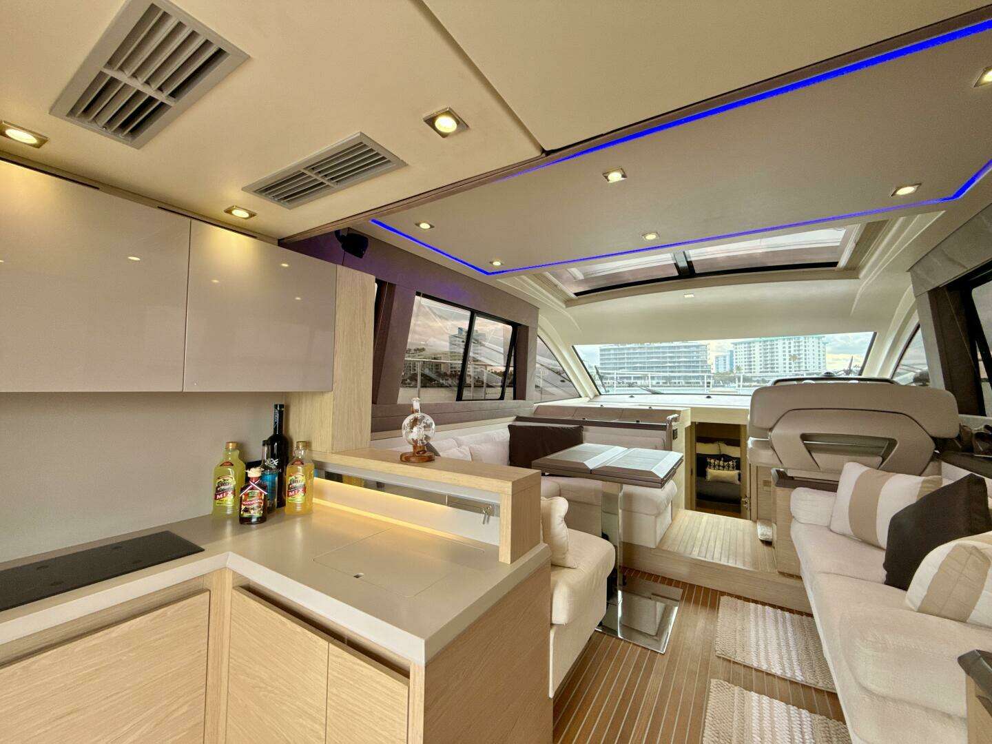 The Monte Carlo line represents the continuation of the Monte Carlo Yachts below 60 feet. The Monte Carlo models share the same vision of luxury introduced by the MCY which combines a timeless elegance and the great pleasure to be aboard. The MC 5 stands as a precursor in the Beneteau range in terms of luxury perception: new materials, new wood finishing, strong attention to details… directly inherited from the world of MCY. The MC 5 is designed in the pure Beneteau nautical tradition, and thus benefits from the experience, the engineering and the industrial power of a nearly 130 years old worldwide established leading brand. The MC 5 is a motor cruiser designed to meet the expectations of a worldwide clientele: she offers great living spaces flooded with natural light, high-end equipment, and technologies to enhance comfort and ensure ultimate well-being for her owners and their guests. The MC 5 is meant to be triply great: Great volume. Great comfort. Great style.