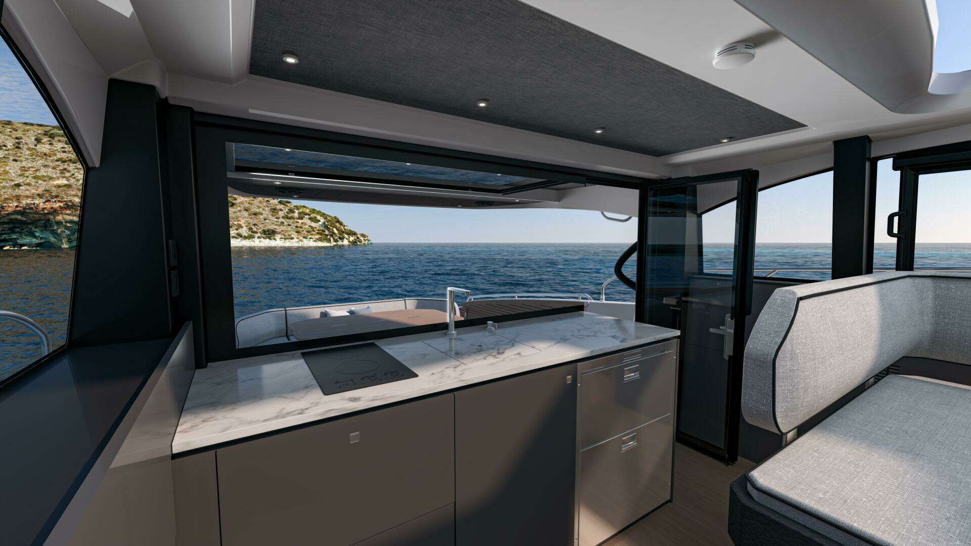 Powered by Volvo Joystick control and equipped with an eco-drive system, the Gran Turismo 50 offers an exceptional range of up to 250 miles at 22 knots (provisional). The bespoke user interface and the choice between open and protected helm stations ensure a smooth, intuitive driving experience in all conditions.