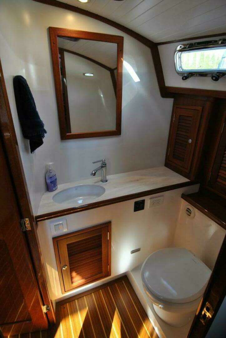 • Full-size stall shower with seat (also accessed from lower companionway for guest access)