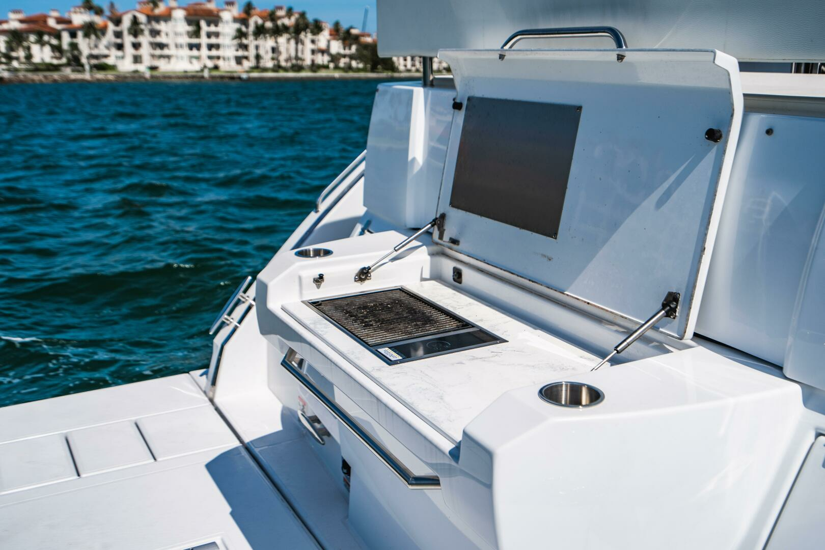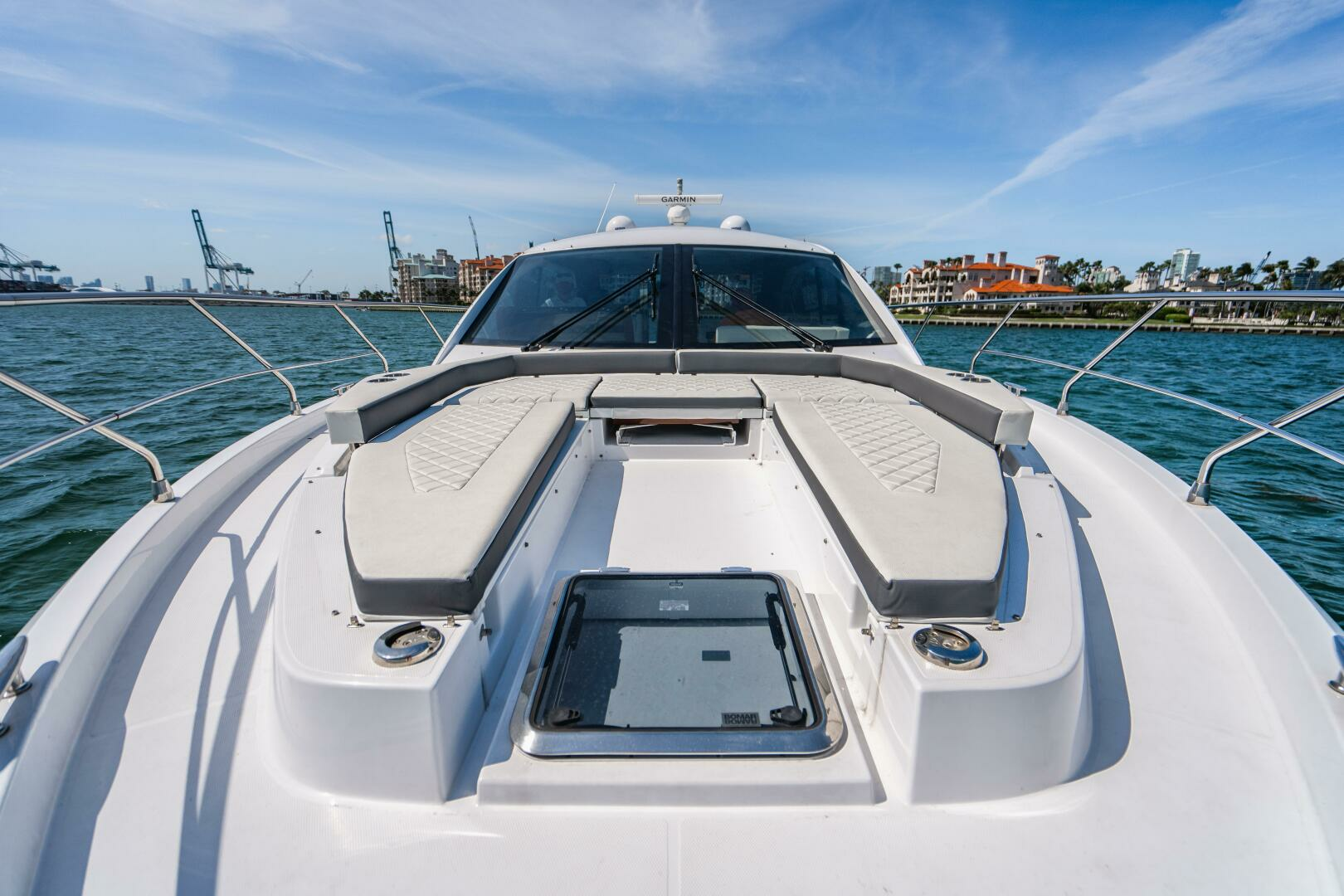 With low hours, this 50’ Cantius represents one of the best values in its class. There is a full-factory Brunswick Premier passport upgraded warranty to 11/2027. Some notable features include a 4-pole stainless white