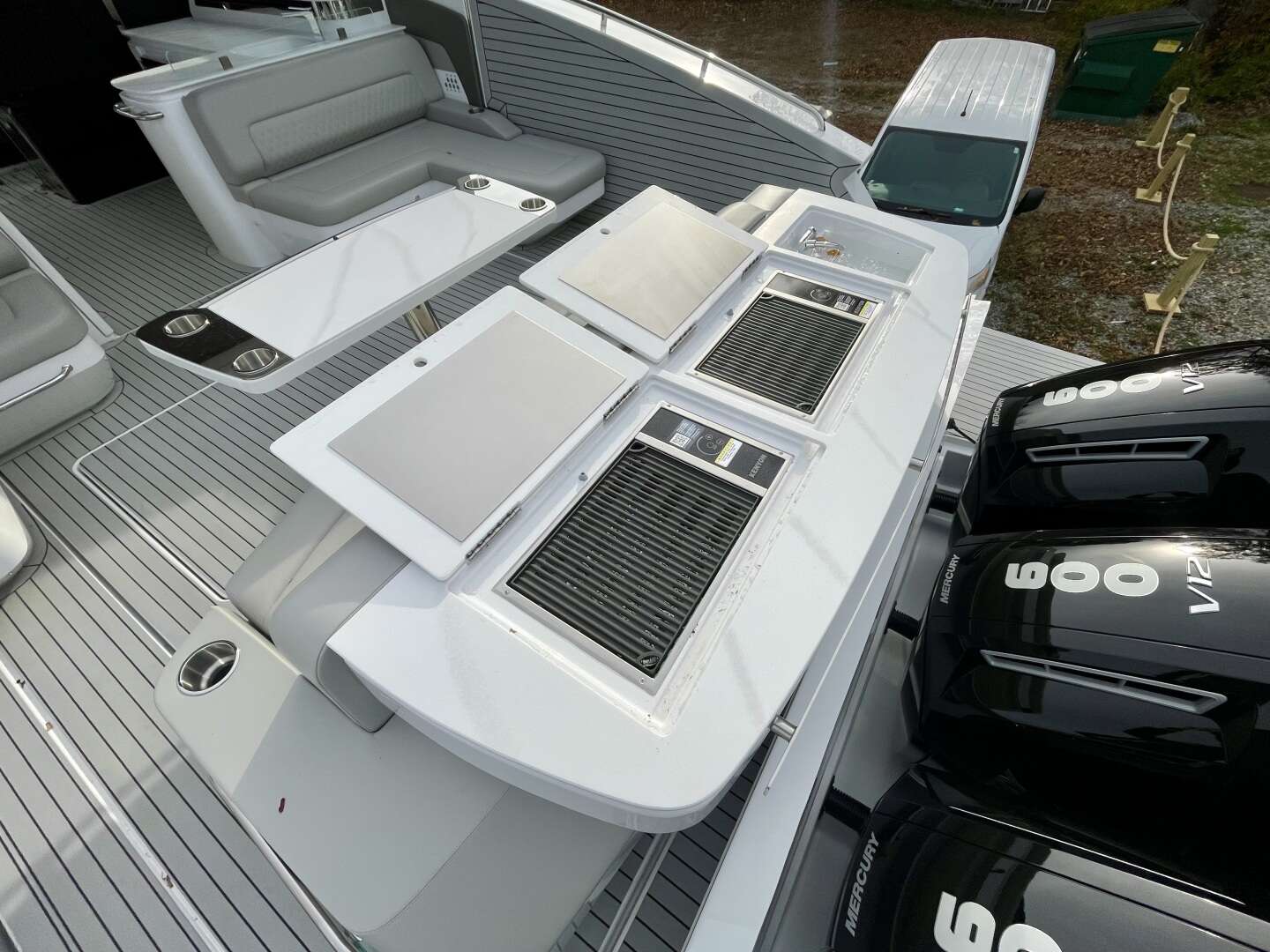 Powered by three robust Mercury 600 JPO VDO outboards, this yacht delivers an exhilarating 1800hp, ensuring you can conquer the open seas with confidence. Feel the thrill of the waves beneath you as you glide effortlessly along the coastline.
