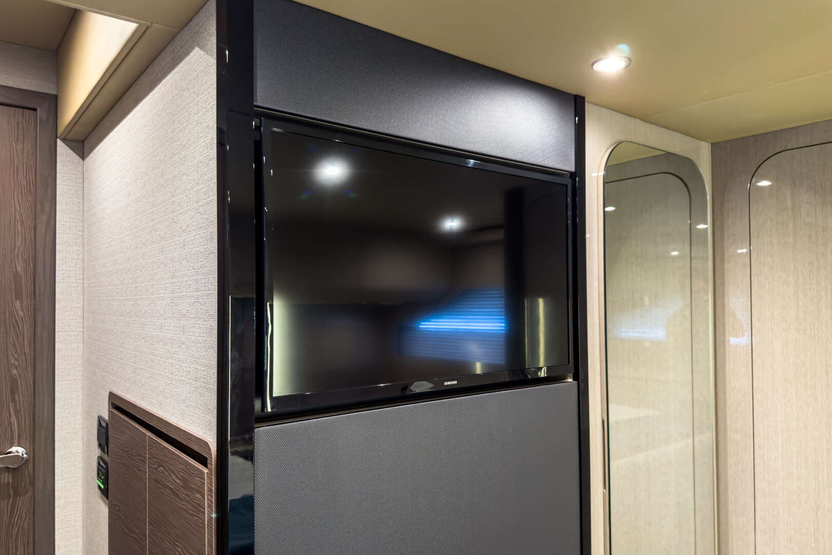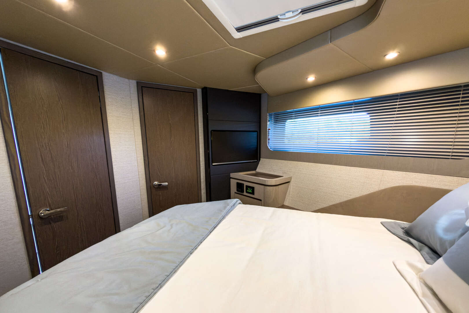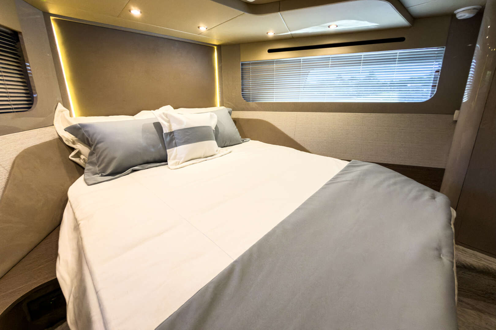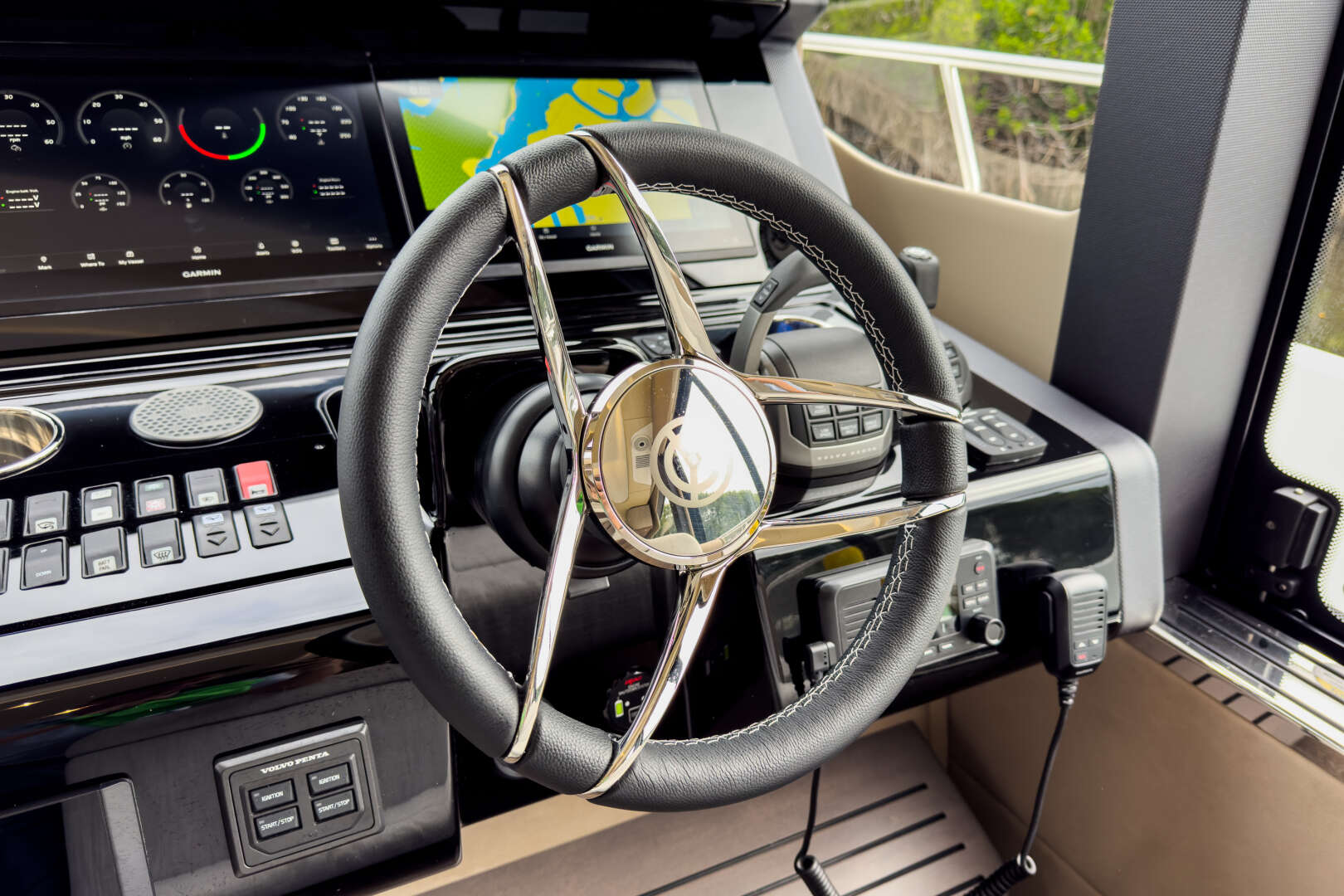 Powered by twin Volvo Penta D8 800 IPS engines, the 50 FLY offers smooth, responsive performance with joystick docking and advanced control systems that make handling effortless whether cruising offshore or maneuvering in tight marinas.