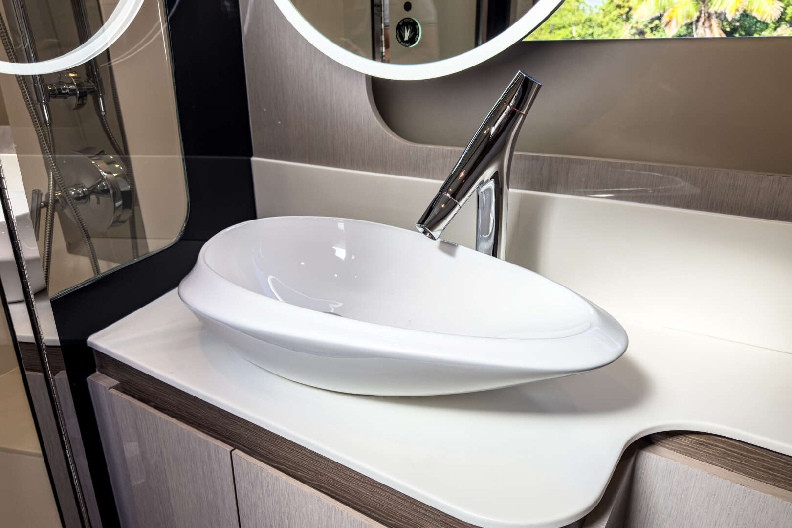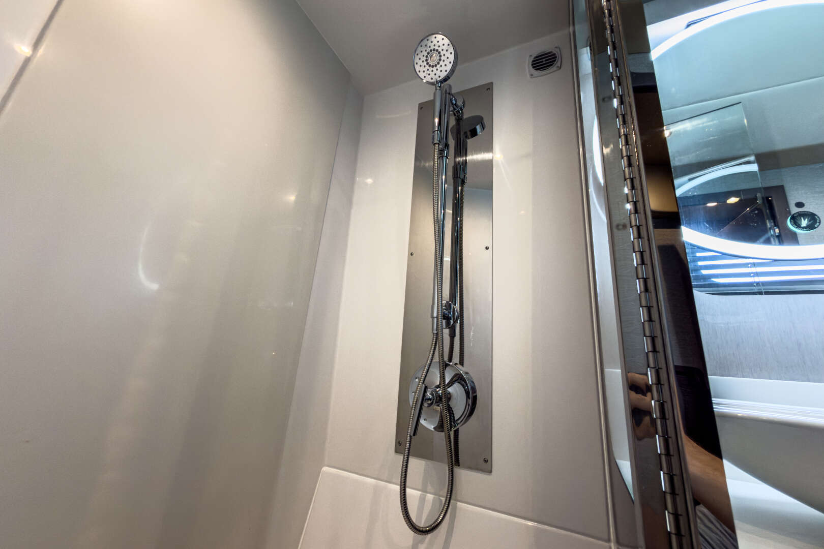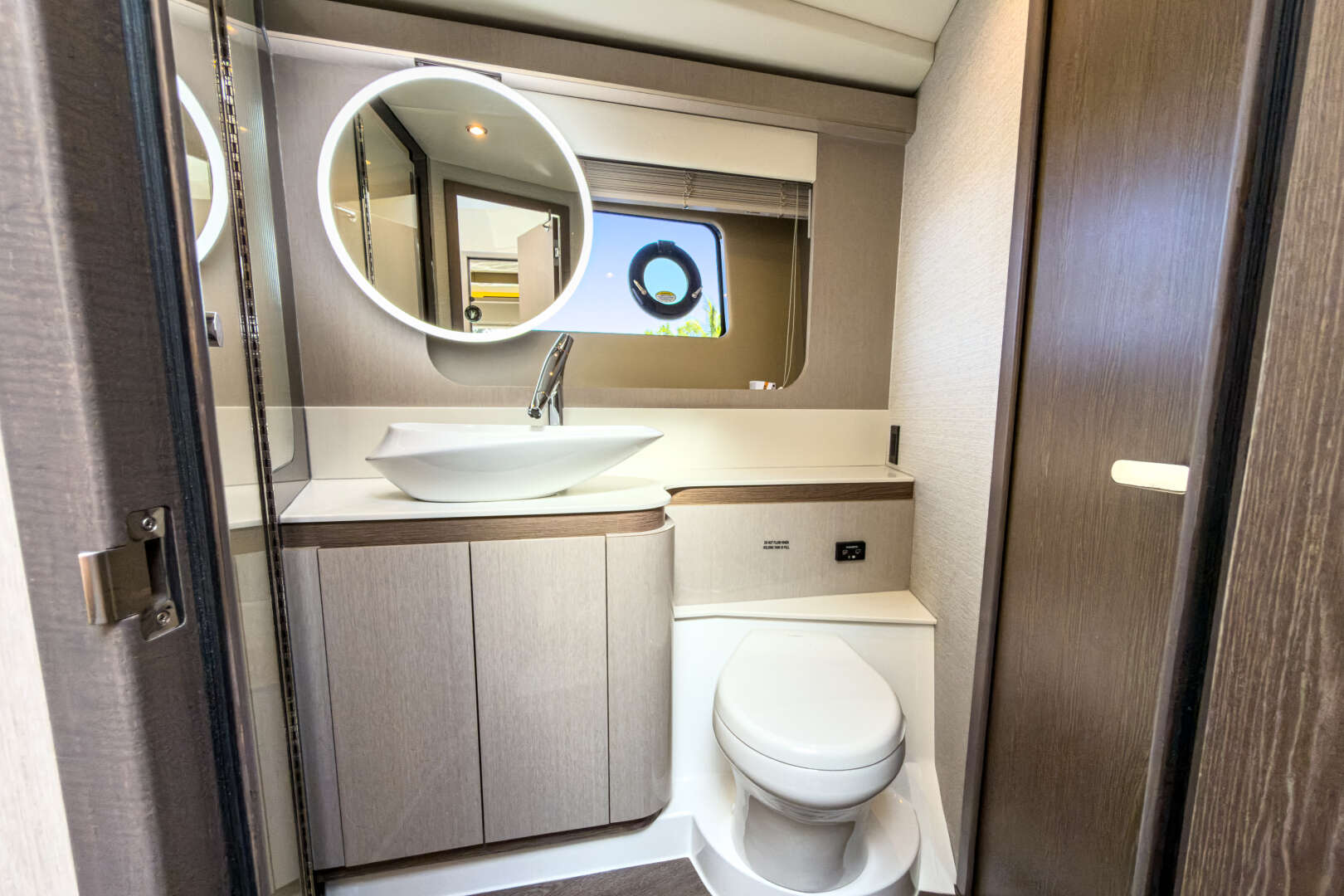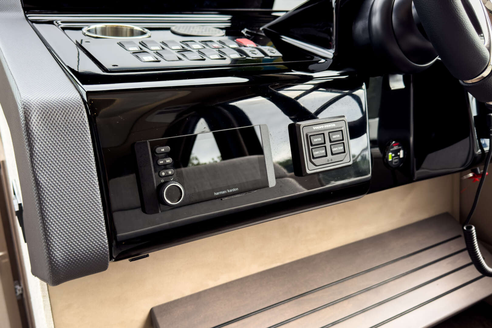 Powered by twin Volvo Penta D8 800 IPS engines, the 50 FLY offers smooth, responsive performance with joystick docking and advanced control systems that make handling effortless whether cruising offshore or maneuvering in tight marinas.