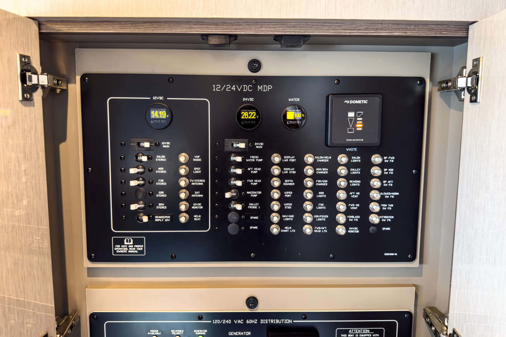 This 50 FLY is loaded with premium features including a 16kW diesel generator, Dockmate remote docking system, cockpit joystick docking station, underwater lighting, washer/dryer, Algae-X fuel conditioning system, and more—making it equally capable for extended cruising or weekend escapes.