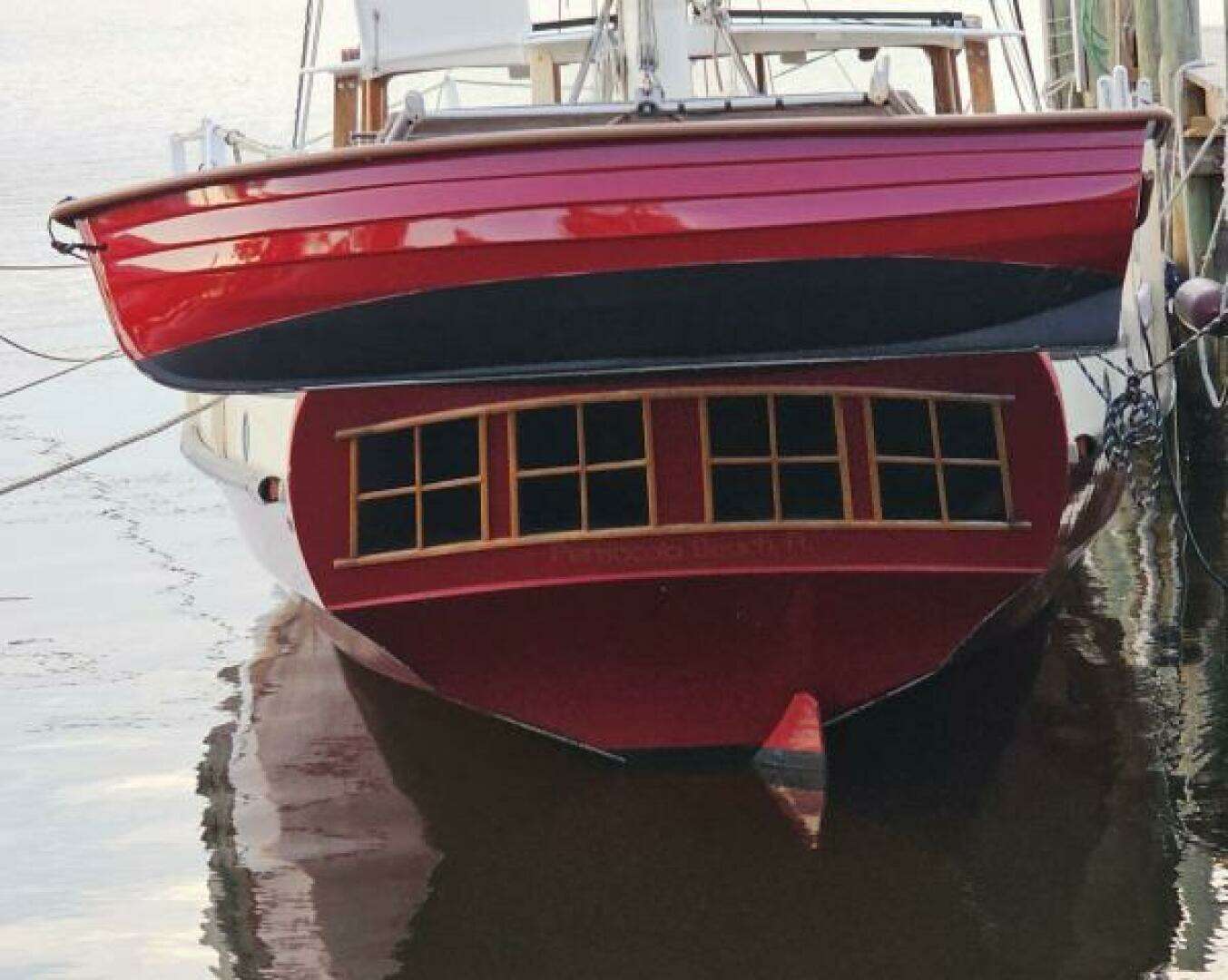 Reduced windage and weight above decks The long, low, “piratical” profile of the boat is not an affectation. It results from a concerted and effective effort to improve stability and reduce rolling and heeling from beam winds.