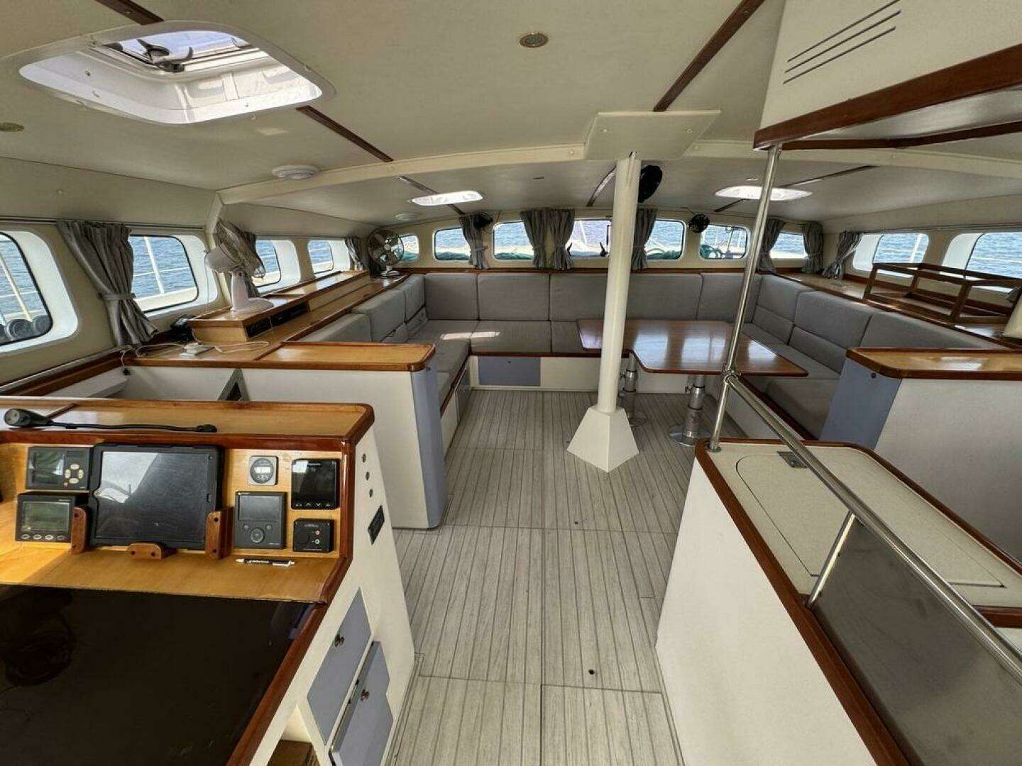 - The large lounge/salon has 6'4" headroom at the entrance and is well laid out with a hi-tech navigation station with oversized chart table to port.