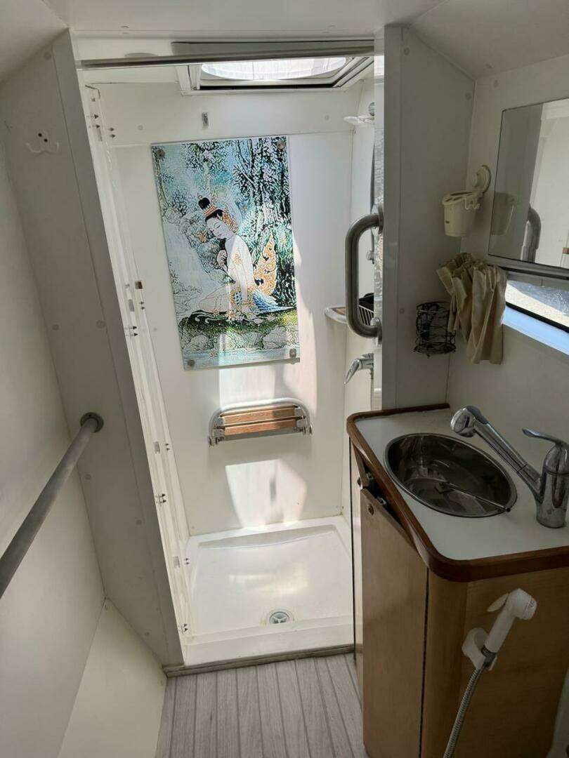 The starboard hull is completely dedicated to the comfort and privacy of the owner offering queen-sized bed, couch bed, work station and master bathroom suite with electric toilet and walk-in shower. The Port hull offers two guest cabins and a shared bathroom in a multi-function layout allowing for extra storage if needed.