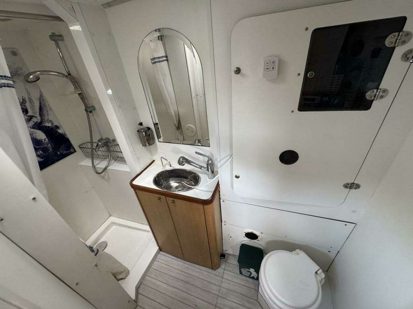 - The starboard hull is completely dedicated to the comfort and privacy of the owner offering queen-sized bed, couch bed, work station and master bathroom suite with electric toilet and walk-in shower.