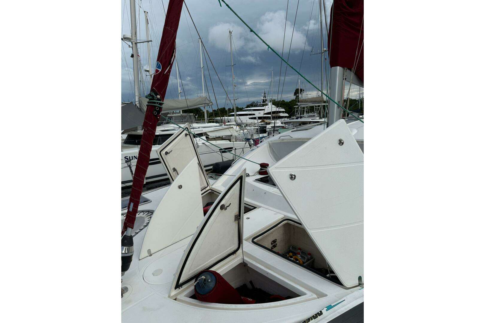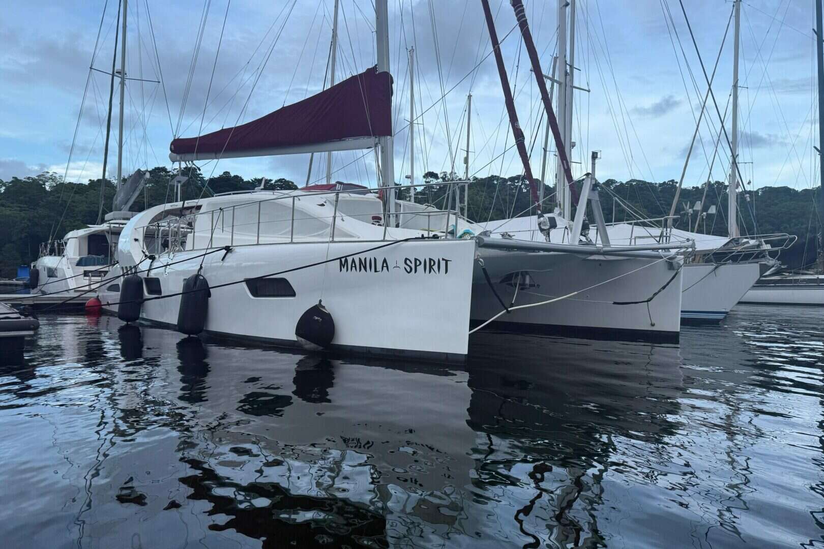 Dean Catamarans 5000 Manila SpiritCurrent Location: Panama Shelter Bay MarinaA Cherished Home, Not a Charter BoatThe Pinnacle of Turnkey ReadinessManila Spirit represents a truly exceptional offering: the legendary Dean 5000, known as the precursor to the award-winning Xquisite X5. She is a robust, ocean-ready vessel built to the highest Category A - Altamar (Ocean) standard , combining high performance with the safety and spaciousness required for world cruising.This catamaran is reluctantly offered for sale because the owners must change their long-term onboard living plans for health reasons. Consequently, Manila Spirit is maintained in immaculate condition with an extraordinary list of high-end, nearly new equipment a genuine turnkey opportunity where all systems are ready for immediate departure.STANDOUT FEATURES1. Unmatched Power and Energy IndependenceThis is a vessel engineered for true off-grid freedom: Massive Battery Bank: New (2024) Mastervolt 1000 Ah Gel house battery bank provides superior endurance. Hybrid Charging: Power is constantly managed by a Silent Wind Generator (new 2018) and a huge solar array totaling 1670 Watts from three separate installations (new 20172021). On-Demand Water: A Sea-R.O. 220 V water maker (new 2024) guarantees fresh water for unlimited cruising. Redundant Propulsion: Twin 80 HP Yanmar Commonrail Marine Diesels (new 2017, serviced 2024) with folding propellers and a Maxpower bow thruster (new 2024 battery/charger).2. Exceptional Blue-Water Capability & Ease of SailDesigned for short-handed sailing, MAISIE boasts a brand-new sail inventory and top-tier deck gear: New Ullman Sail Inventory (2024): This includes a new Mainsail (1076 sq ft), a new Reacher (968 sq ft on an electric furler), and a new Jib (452 sq ft on a 2nd electric furler). An Asymmetrical Spinnaker (1722 sq ft) provides downwind speed. Effortless Handling: Equipped with 2 electric Harken winches and 2 Selden electric furlers, all sail handling can be managed with minimal effort. Hydro Upgrades: Hydraulic steering system upgrades (new 2019) ensure precise control and reliability.3. State-of-the-Art Navigation and ConnectivityStay connected, safe, and aware with professional-grade electronics, much of it recently installed: Global Connectivity: Features Starlink (new 09/2024) , KVH V3-HTS MiniVSAT (new 2021) , and an ICOM SSB radio (new 2021). Advanced Navigation Suite: Full Furuno TZT14 14 plotter (new 2018) , Furuno HD Radar DRS4NXT with Doppler receiver (new 2018) , and dual autopilot systems. Visibility & Safety: Includes a forward echo sounder (pre-installed 2018) , AIS (new 2016) , and a Viking 8 man life raft (serviced 2024).4. Luxurious Owner's Version InteriorThe unique owner's layout offers vast, comfortable living quarters and a dedicated workshop space. Salon Comfort: Air conditioning (40,000 BTU total) and ambient LED strip lighting create a refined atmosphere. Gourmet Galley: A fully equipped galley includes a SMEG dishwasher , SMEG washer/dryer , separate Vitrifrigo fridges/freezers, and an extra freezer in the hull. Entertainment & Finesse: Includes a Custom Kawai MP10 electric piano , 43 inch Samsung LED TV and a dedicated workshop with basic tools.FULL INVENTORY HIGHLIGHTS Antifouling: Trinidad hard antifouling (3 coats, last painted March 2024). Deck: Extended bathing platforms (new 2019) , high-power SeaBlaze X2 underwater lights (new 2019). Water Toys: Aluminum-hull tender (3D Tender UL 310) with both a Tohatsu 9.9 hp motor and a Torqueedo electric motor. Spares: An extensive inventory of spare parts for all critical systems, including engines, generator, water maker, and rigging.FULL SPEC SHEETBuilderDean CatamaransModel5000Year Built2012ConditionExellent conditionLength Overall (LOA)15.39 mBeam8.00 mDraft1.50 mWeight/Displacement19,000 kgMaterialGlass Reinforced Plastic (GRP)Design CategoryA - OceanAccommodation3 Cabins, 3 Berths, 3 Heads (Owner's Version Layout )ENGINE AND PROPULSION Engines: 2 Yanmar 4JH80 Commonrail Marine Diesel Power: 280 HP/59 kW (approx. 1700 hours History: New in 2017, fully serviced in 2024, with a 250h service scheduled for 2025. Drives: SD-60 sail drives (new 2017) Propellers: SPW Varioprop DF112 4-bladed folding propellers (new 2016) Alternators: 2 Yanmar 90 A standard and 2 Yanmar 110 A High Output (new 2017) Bow Thruster: Maxpower 60 with 24 V Gel battery bank (new 2024) and 24 V charger (new 2024) Hydraulic Steering Upgrade: Electro-hydraulic autopilot pump EHPE12R, hydraulic steering cylinders MTP175, steering pump HTP42R (new 2019) Other: Soundproofing in engine rooms (new 2023) , Fuel transfer pump with Parker filters.SAILS AND RIGGING Mainsail: Ullman Sails 100 m2 (new 2024) Reacher: 90 m2 on electric furler (new 2024) Jib: 42 m2 on 2nd electric furler (new 2024) Asymmetrical Spinnaker: 160 m2 with Top down furler (new 2020) Mast: Custom made by Southern Spars / Cape Town Winches: 2 Harken electric winches , Manuel Harken winch foredeck , 2 Selden electric furlers for jib and reacher sails (new 2017).ELECTRICAL SYSTEM AND POWER House Batteries: Mastervolt 5200 Ah 12 V Gel, totaling 1000 Ah (new 2024) Starting Batteries: 2110 Ah AGM (new 2024) Generator: Fischer Panda 8000i 8 kW - 220 V - with sound insulation shell (serviced 2025) Solar Power: 6145 W on salon coach roof (recessed, hinged, and adjustable) (new 2020) 2300 W on dinghy supports (new 2017) 2100 W on coach roof in front of helm (new 2021) Solar Chargers: Mastervolt 60 A MPPT (new 2018) , Victronic 40 A and 30 A MPPT (new 2017) Wind Generator: Silent Wind Generator 400 W (new 2018) Inverter/Charger: Mastervolt Combi Ultra 12 V/3000 W/150 (new 2017) System Management: Mastervolt DC heavy current distribution and shunt connected to Masterbus network (new 2018) , Mastervolt EasyView5 control touchscreen at the nav station (new 2019).NAVIGATION AND ELECTRONICS Plotter/Radar: Furuno Touch TZT14 14 (new 2018) , Furuno HD Radar DRS4NXT with Doppler receiver (new 2018) Auto