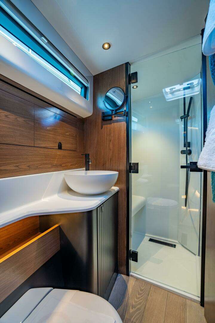 - Anchoring – 24VDC Lewmar VX2+ vertical anchor windlass with power up and down, plus free-fall capability. Local control and remote control at helm