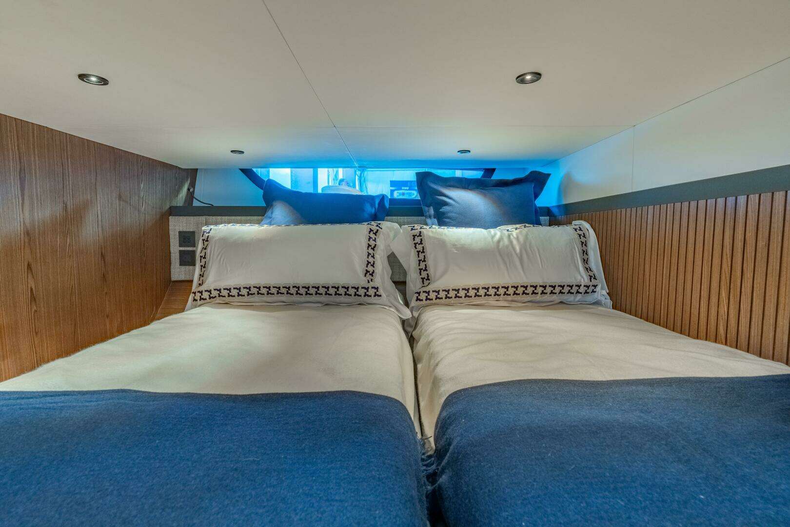 - Berths convertible from twins to double, via slides with DC electric actuation