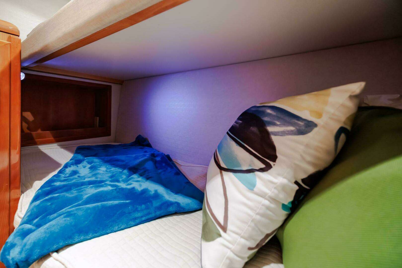 - VIP stateroom: Island berth or twin configuration, ample storage