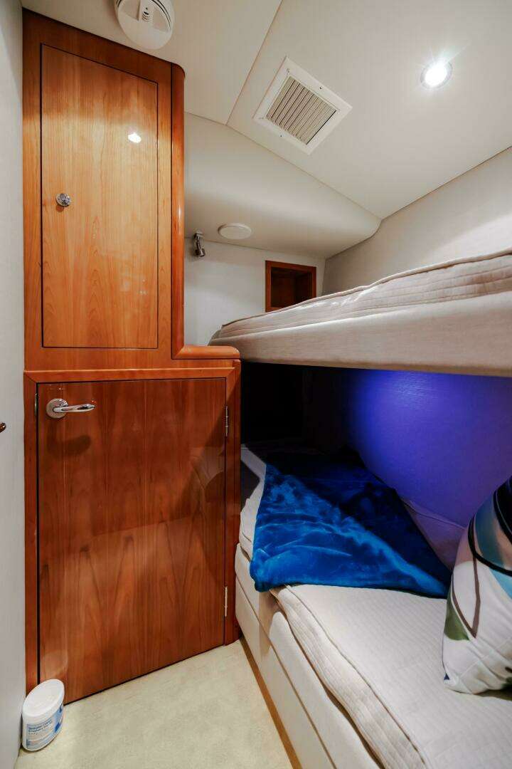 - Guest cabin: Over/under berths or optional office layout