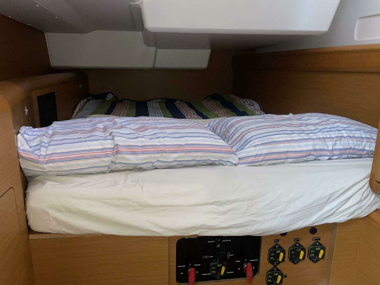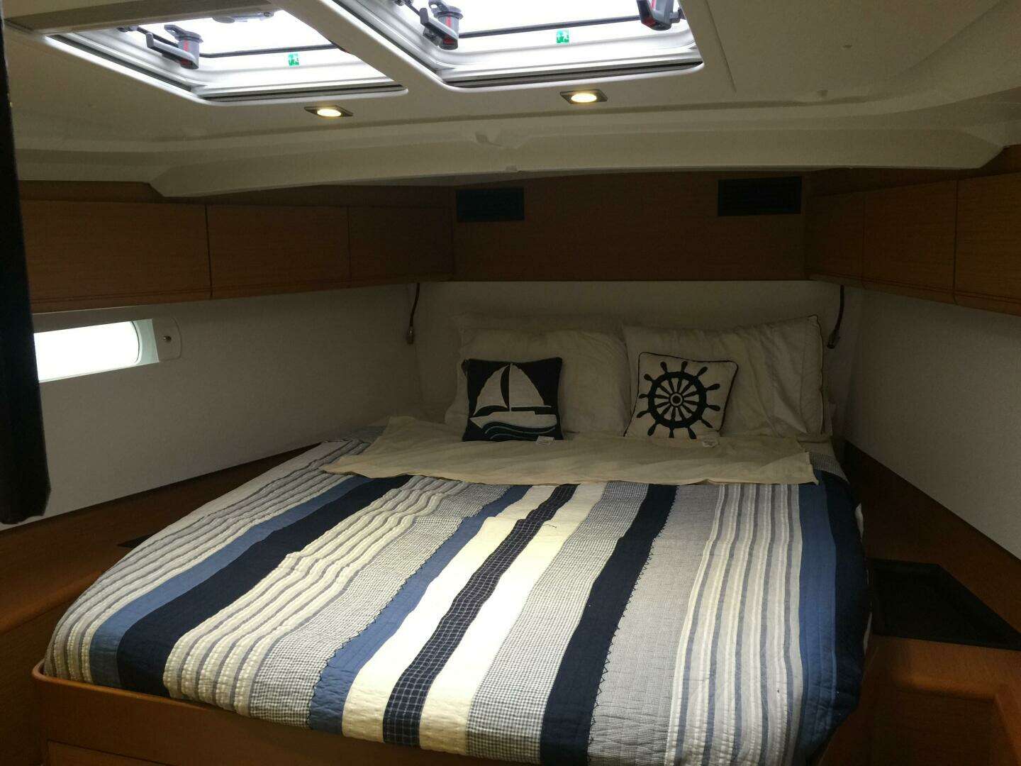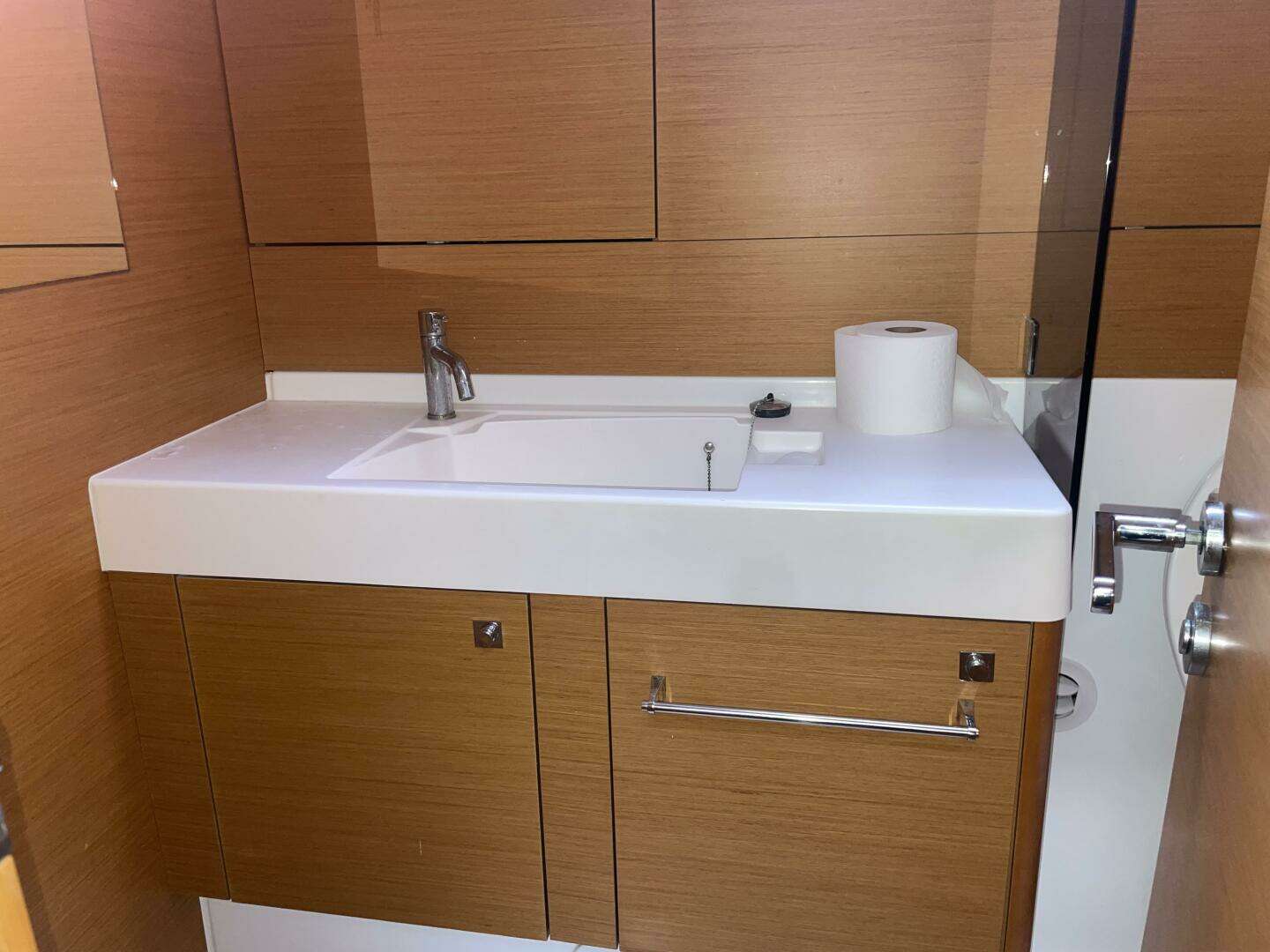 This stunning Jeanneau 509 features a luxurious three-cabin, two-head layout with an owner’s stateroom forward. Each cabin offers a queen berth and 6’6” headroom for exceptional comfort. The well-appointed galley includes a three-burner propane stove with oven, microwave, top and front-loading refrigerator, deep freezer, and an additional fridge. The main salon features a deluxe folding dining table, chart table, Bose speakers, and TV. Both heads are equipped with quiet flush electric toilets and separate showers.