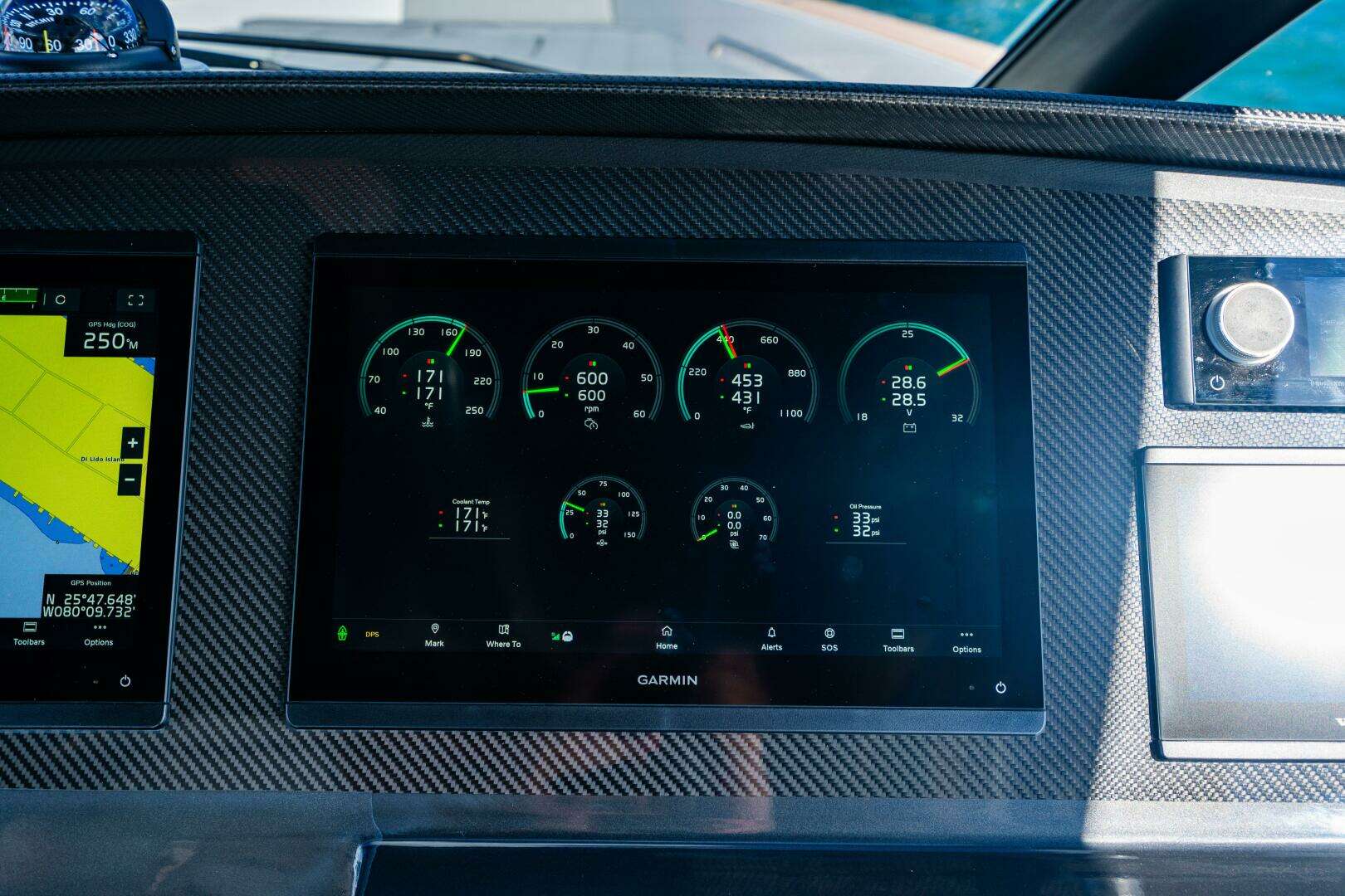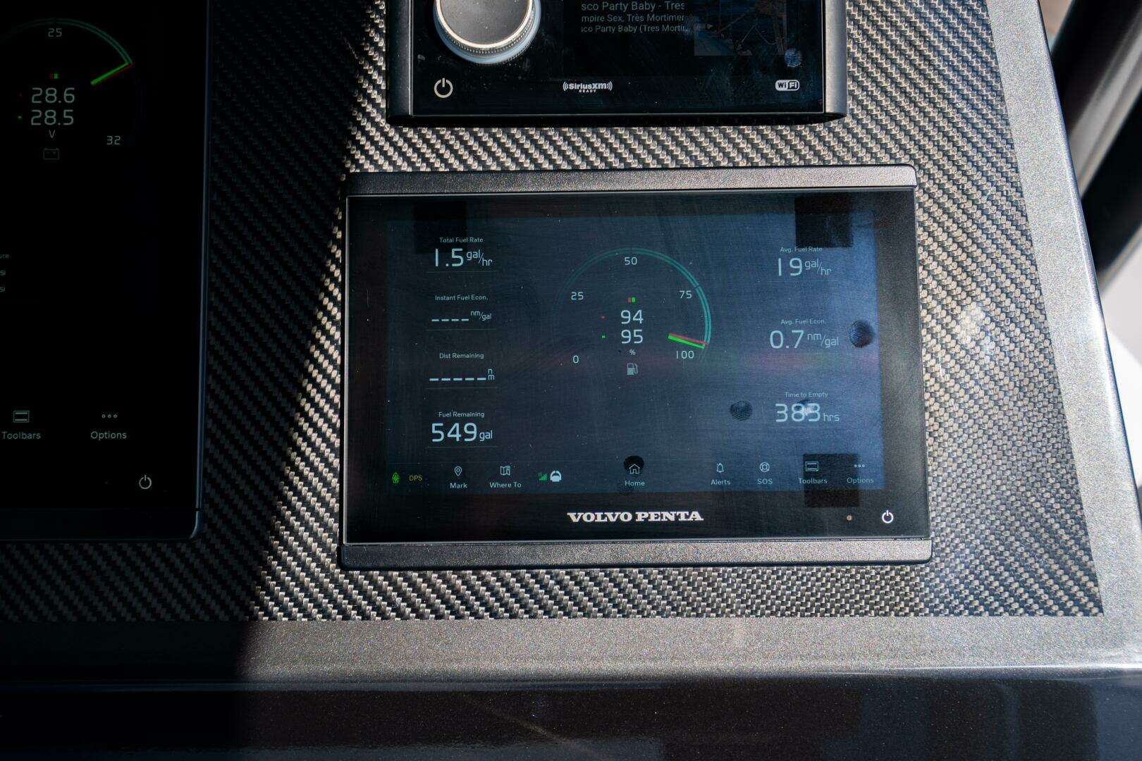 - Electronics: Dual Garmin Chartplotters, Volvo Engine Display, Autopilot, and VHF.