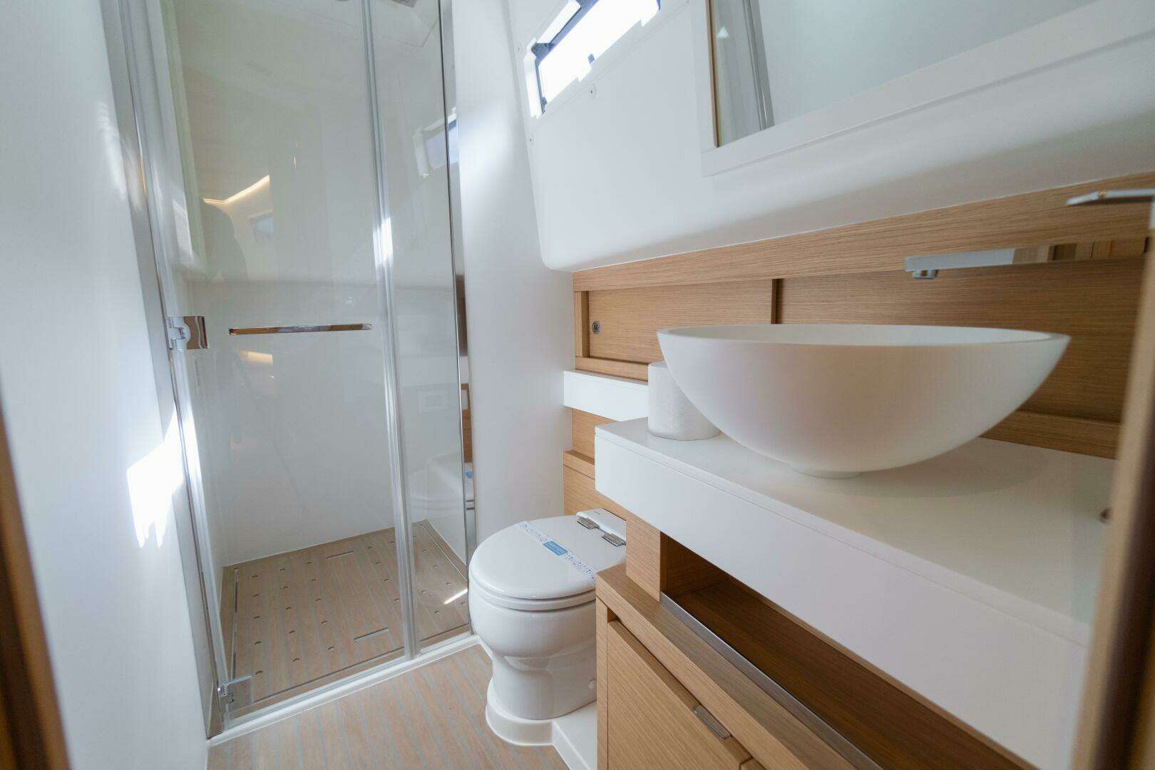 - Tropical air conditioning, including vent for the head. Skipper cabin, flexi teak bathroom floors.