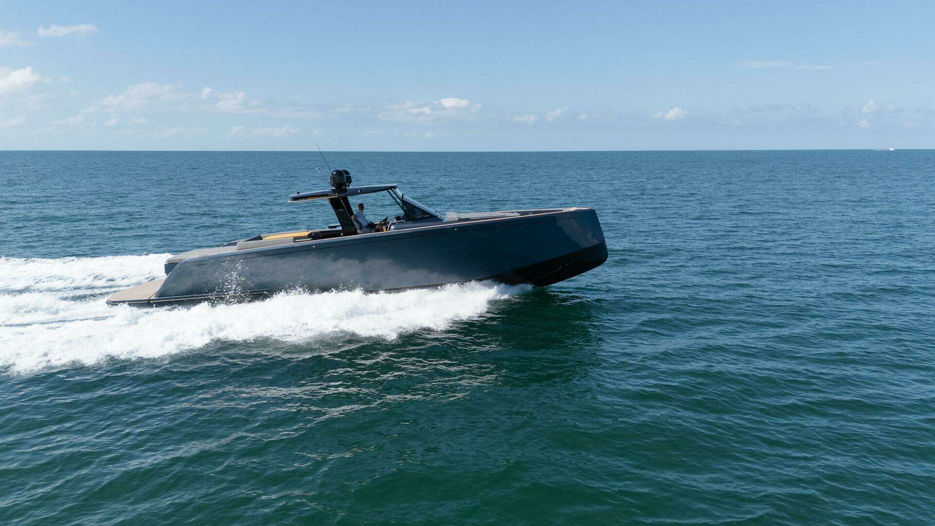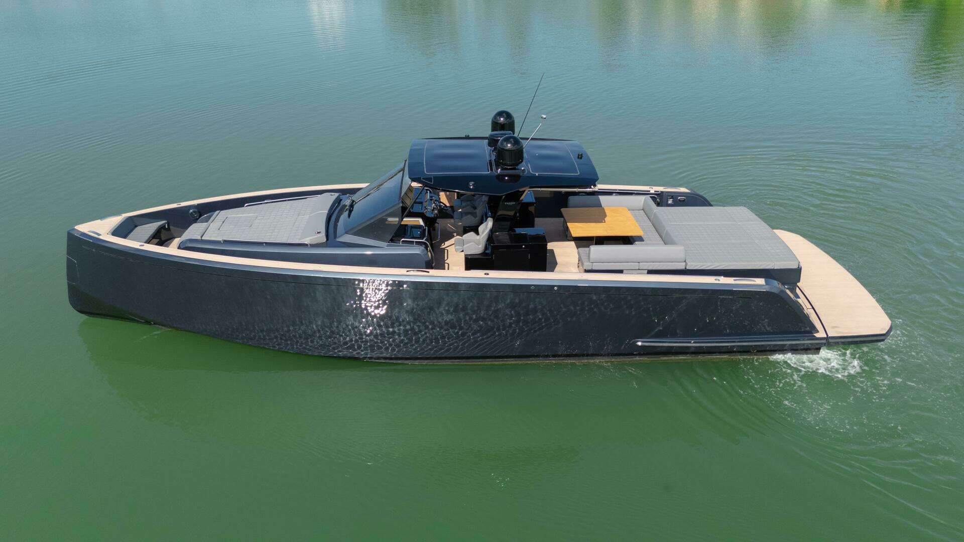The Pardo 50 possess a perfect balance between performance and comfort. Its V-shaped hull has a variable geometry: 16° at stern and more than 50°in the forward section. This guarantees a great seakeeping and at the same time good maneuverability, allowing planning in safe and fast conditions. The convex bottoms ensure a greater shape stability The interior plan is very unique and one of the key selling points of the Pardo brand. On the Pardo 50 you can find a wide-open space with two cabins and two heads. These interiors with great heights are the core of the shipyard’s DNA: a tailor-made timeless design made by the hands of expert artisans.