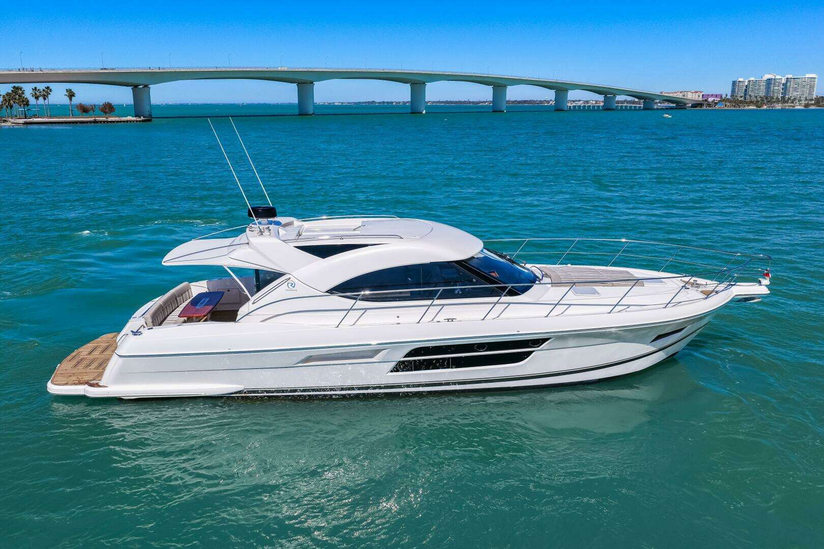 This 2016 Riviera 5000 SY has been lovingly cared for by the original and 2nd owners, and it shows in every area you look. The boat is clean inside and out and well maintained. Engines & PODS just serviced, so the boat is turn key and ready for its next owner.