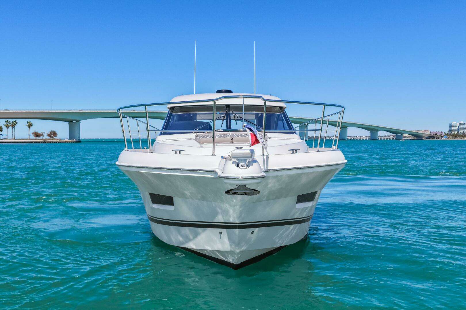 She is powered by the efficient Cummins-Zues POD drive package, which provides conveniences like Joystick docking and Sky-hook position holding capabilities. The boat is fun, safe, fast, and easy to operate.