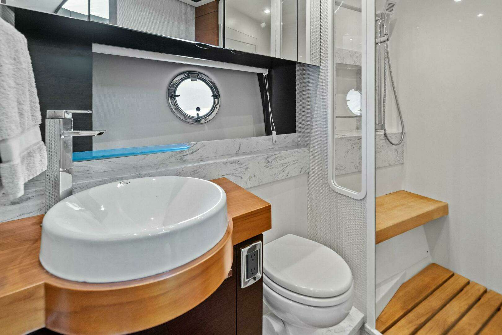 - Solid Teak Floor in Salon, Lower Atrium, 3rd Stateroom option, VIP/Forward Stateroom. Master Stateroom