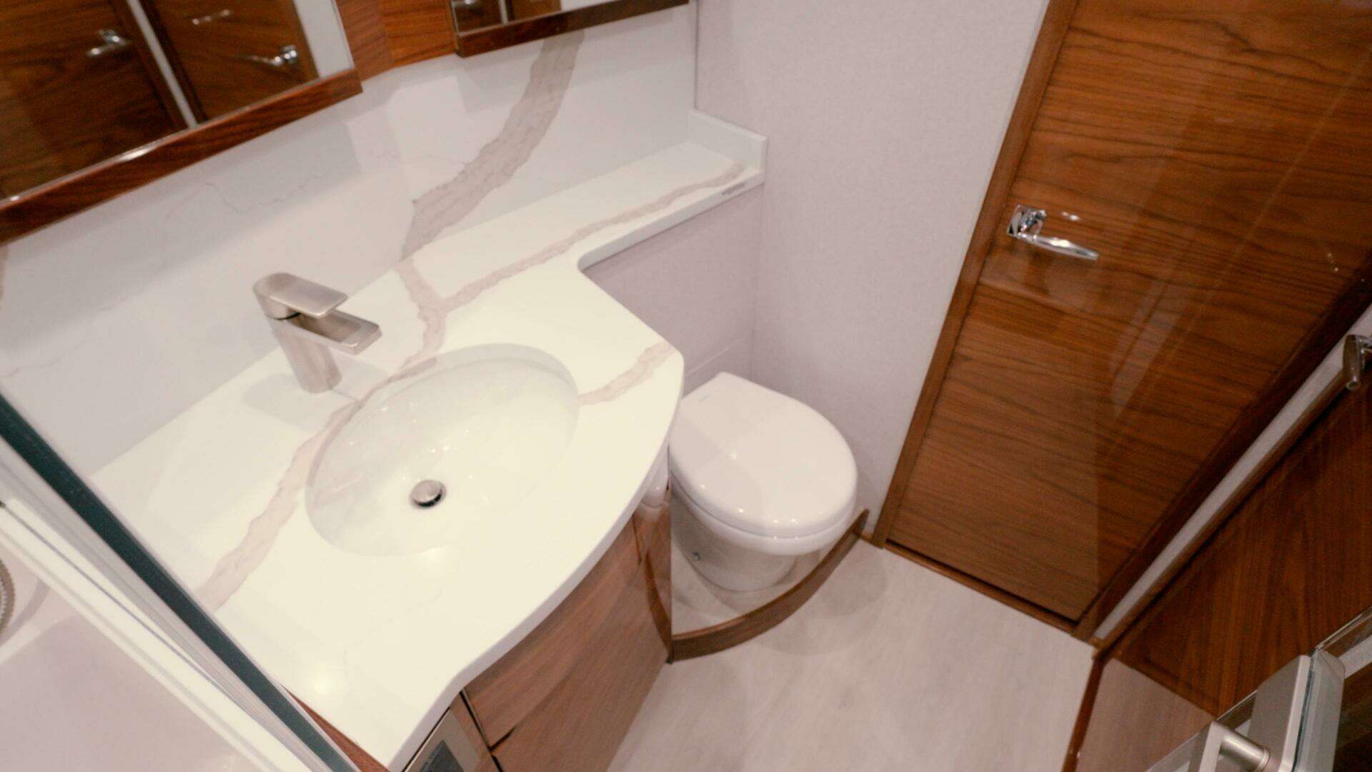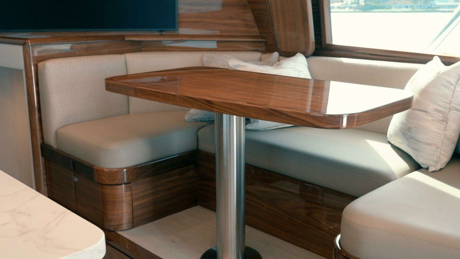 Below deck, the 50 Convertible offers a three-stateroom, two-head layout, highlighted by a private master suite, a forward guest stateroom, and a twin-berth cabin to starboard. The salon showcases horizontal-grain walnut joinery, a spacious lounge, and a well-equipped galley with premium appliances and stone countertops. Every space reflects Viking’s unmatched craftsmanship and attention to detail.