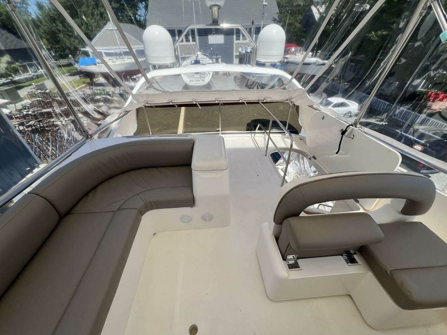 - The Viking Princess Motor Yacht 50 is a wonderful design with the comfort for living aboard indefinately. Her exterior is welcoming and can accommodate large gatherings. Her large swim platform makes entering the vessel easy and walks one into her large cockpit with built-in bench seat aft and room for additional chairs. Steps both port and starboard lead to her side decks and to the foredeck. High stainless steel side rails as well as stainless steel handrails make walking forward feel safe and secure. Built-in steps lead to her extremely large flybridge area with built-in U-shaped seating to starboard and double wide helm seat on port with a full enclosure. Day Fridge at the aft end of the seating area.