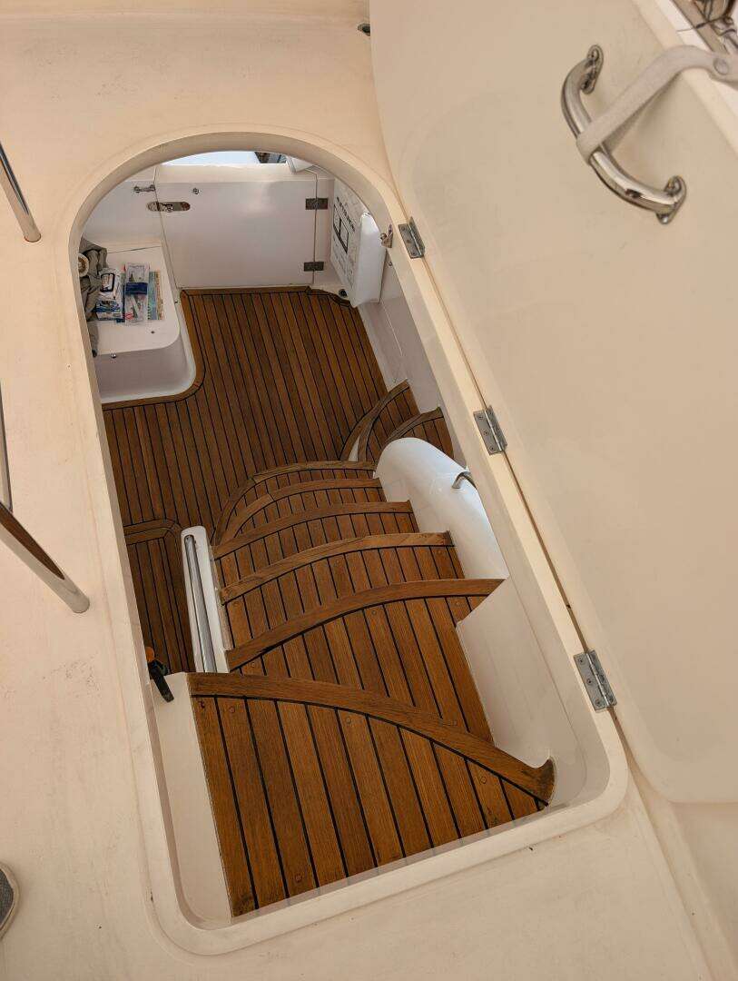 - 2025 the owners had the teak on the swim platform removed and a more durable non-skid surface applied.
