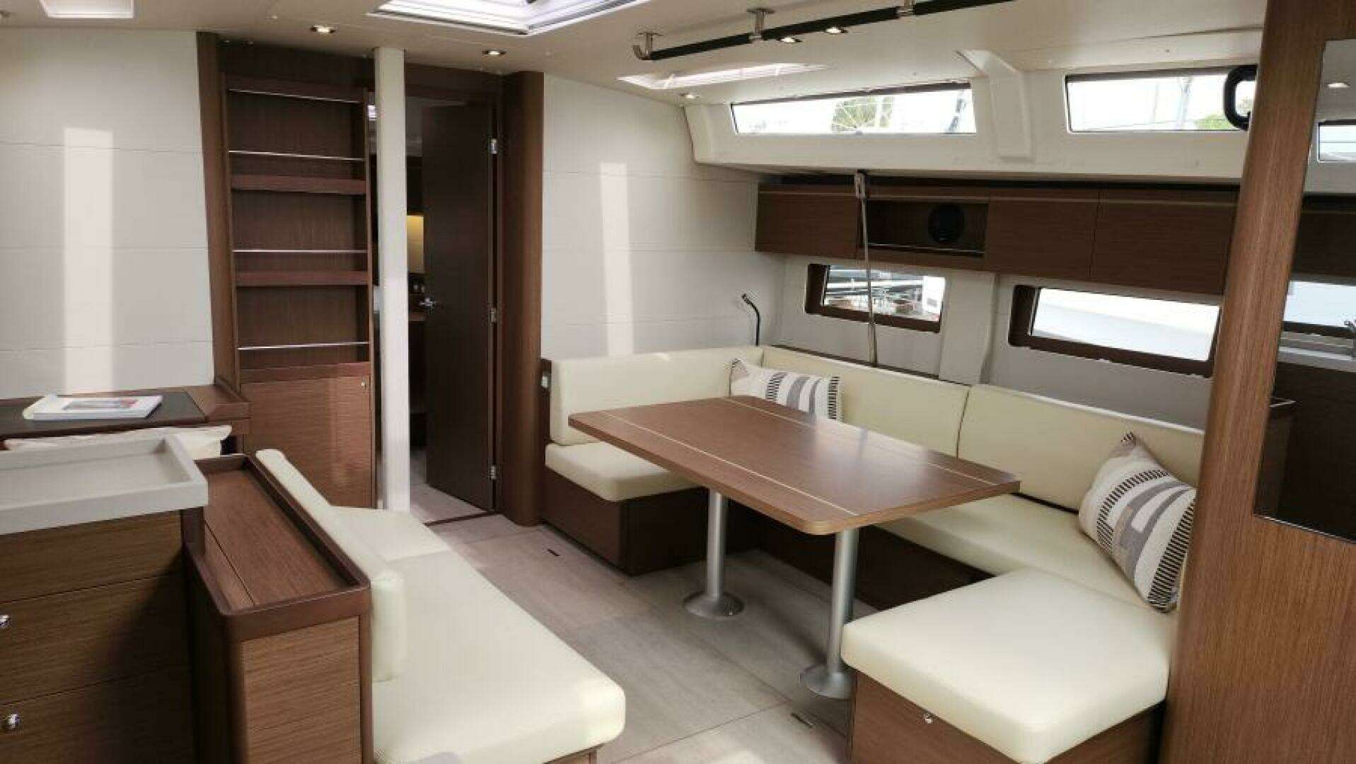 | Notable Upgrades: Electric Winches, Bow Thruster, Ultraleather Cushions, Cockpit Cushions, Companionway Cushions, Luxe Table, Electric Windlass, Electric Heads |